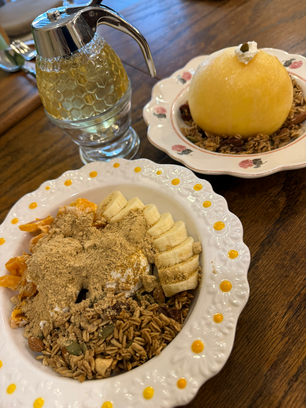 방앗간 요거트도 주문. 바나나, 감말랭이, 콩가루가 너무 맛있었다. 옆 테이블에서 용과, 샤인머스캣, 감귤이 듬뿍 올라간 그릭요거트를 커스텀 주문해 먹는 걸 보고 우리도 다음엔 커스텀으로 주문해 먹어보자고 했다.