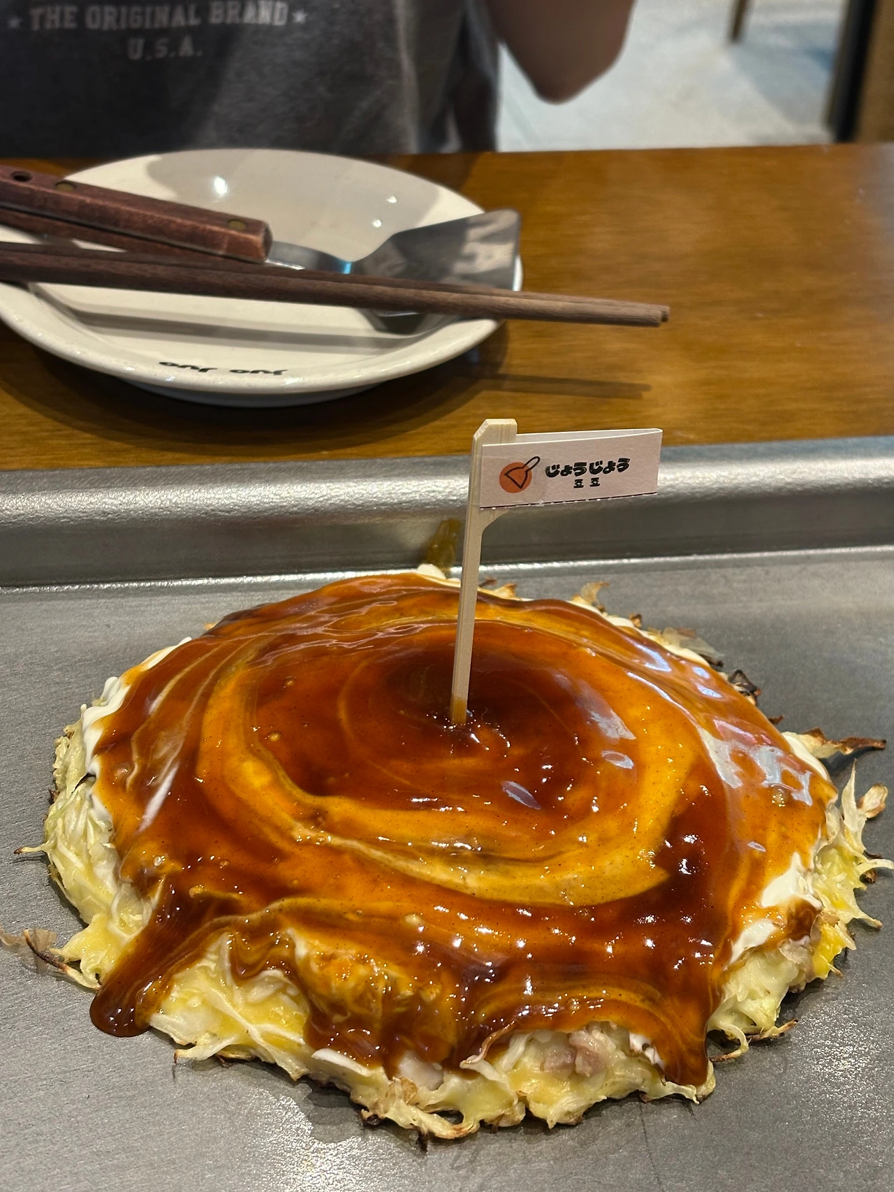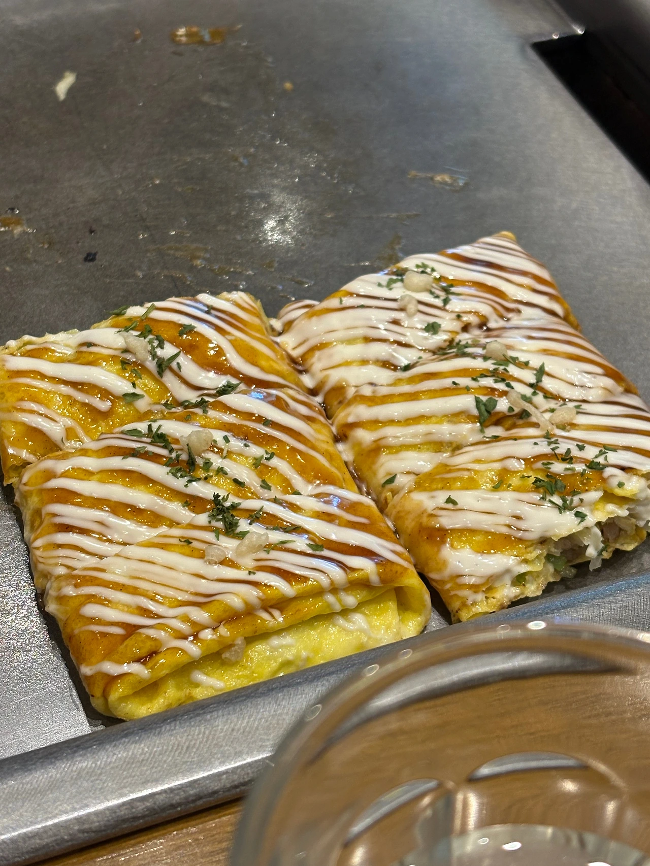 양배추와 문어, 계란, 짭조름 양념이 잘 어우러지는 오꼬노미야끼를 먹고 나니 야끼소바와 돈페이야끼가 나왔다. 돈페이야끼는 삼겹살과 치즈가 들어간 계란말이였다. 부드럽고 쫀득한 돼지고기 식감과 촉촉하데 늘어나는 치즈를 맛있게 먹었다.