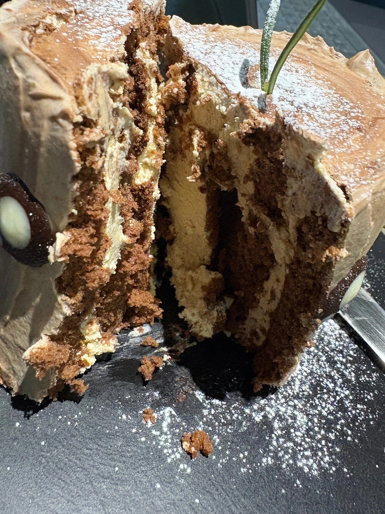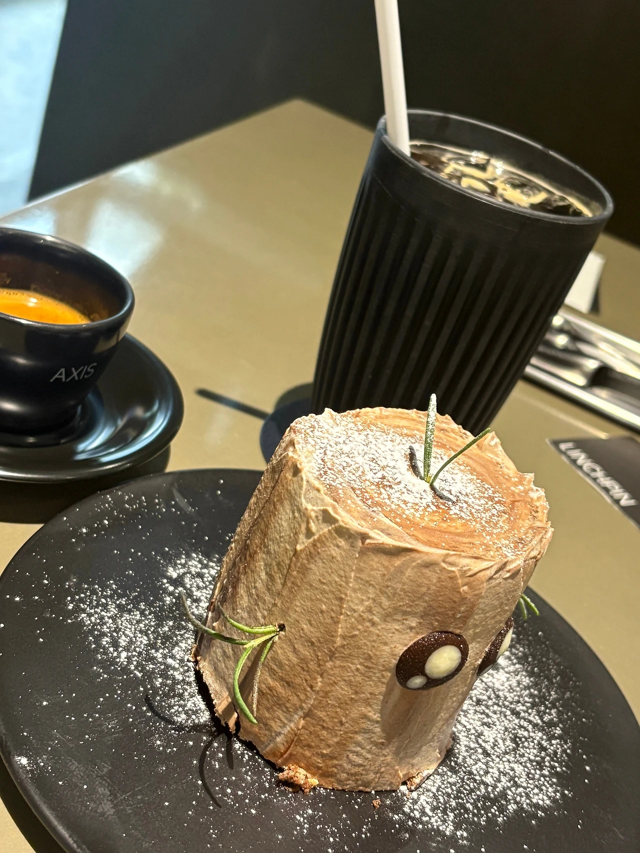 후식으로는 근처 린치핀이라는 스페셜티 커피 카페에 가서 에스프레소, 인절미 초콜릿 케이크를 먹었다!! 케이크는 그루트라는 귀여운 캐릭터 컨셉에 고소한 인절미 크림이 초코와 너무 잘 어울렸다. 천 원을 추가해 lily white 스페셜티 에스프레소를 마셨는데 은은하게 향긋한 과일향에 달콤한 캐러멜과 꿀 향도 나는 듯했다. 쓴 커피에 독특한 향이 더해지면 코와 입이 동시에 즐겁다.