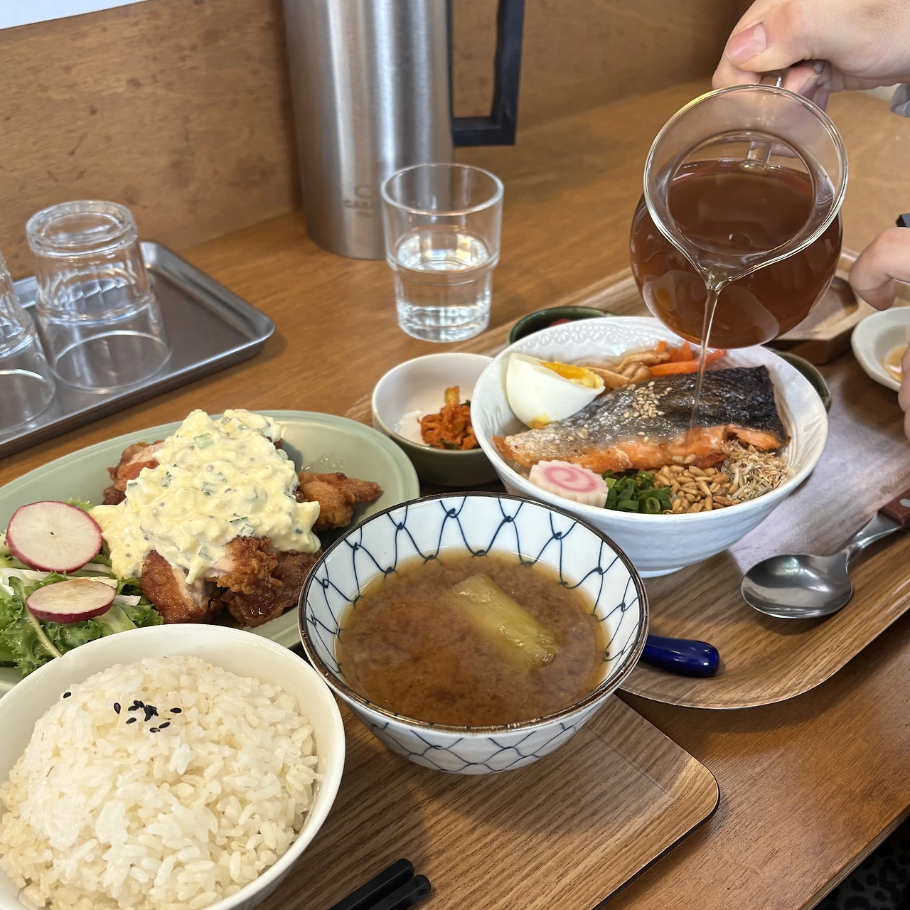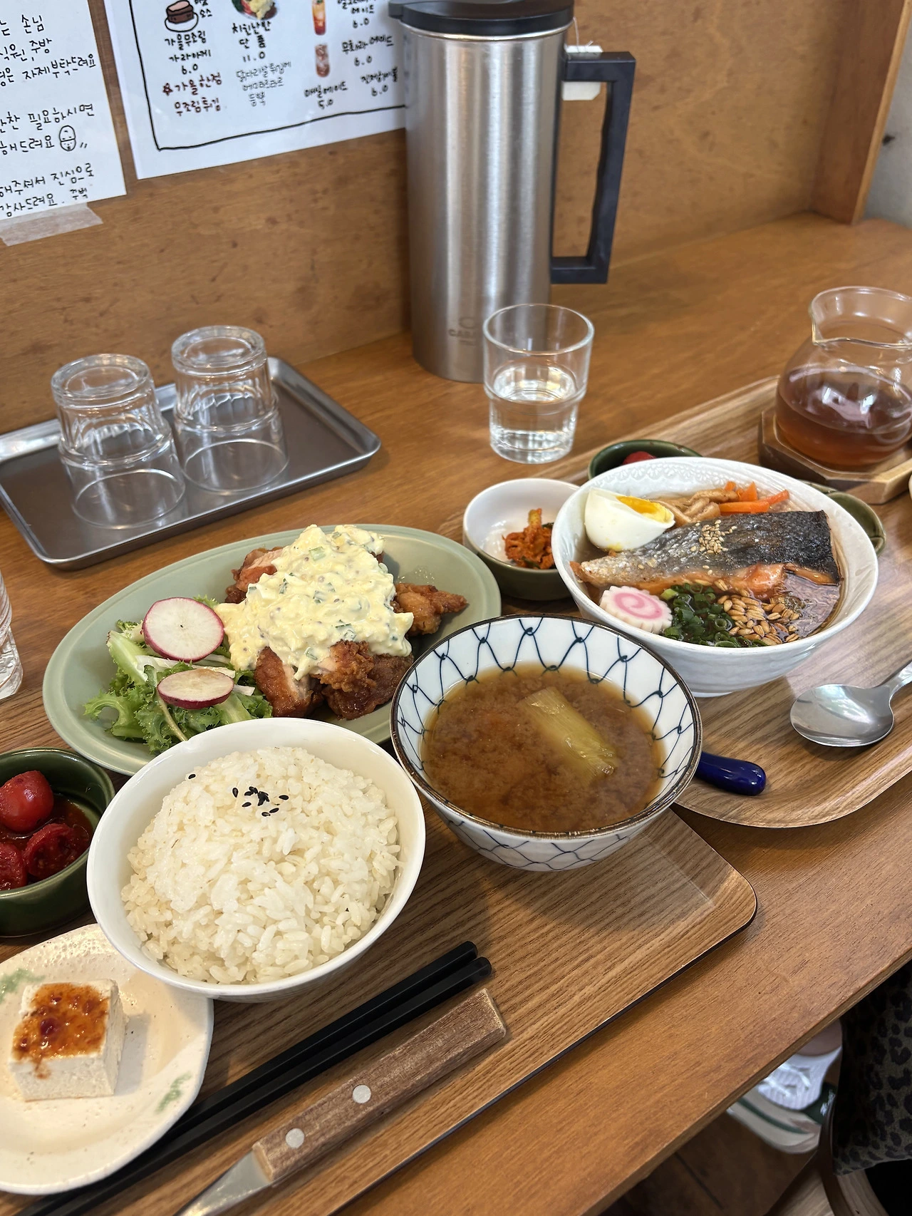 난반이란 일식과 양식이 결합된 음식을 가리킨다는데, 치킨 난반 정식은 에그 타르타르 소스가 뿌려진 가라아케 정식 같았다.