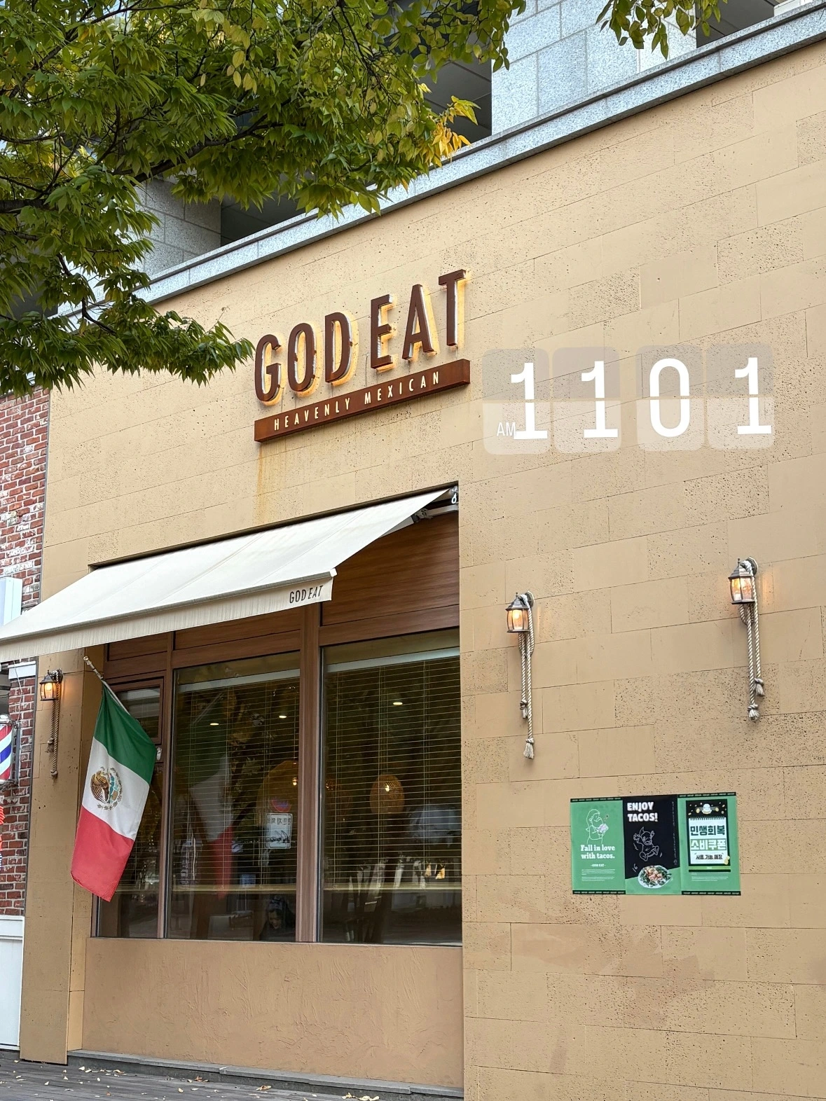 화요일은 공강 시간이 길다. 오후 2시 수업 시작까지 자유 시간. 아침에 일어나 갈치구이를 먹었는데 10시 즈음엔 어김없이 배고파서 길을 나섰다. 11시에 오픈하는, 전부터 와보고 싶었던 멕시칸 레스토랑에 걸어와서 11시에 도착했다.