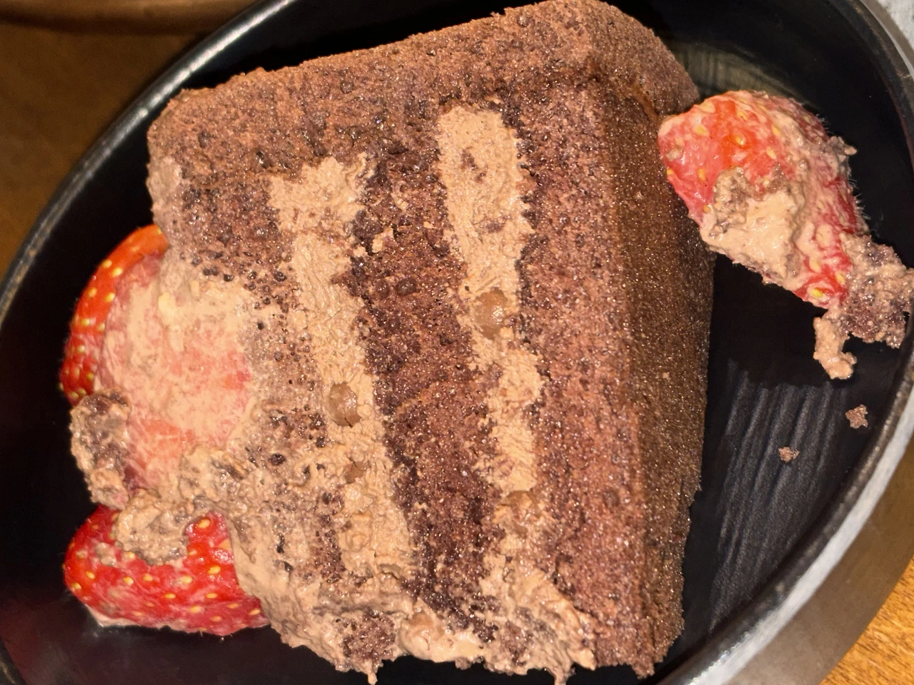 먹고 마시다 보니 술집 사장님께서 모든 테이블에 투썸 스초생(스트로베리 초콜릿 생크림) 케이크를 나눠주셔서 딸기를 먹고 조금 정신을 차렸다.