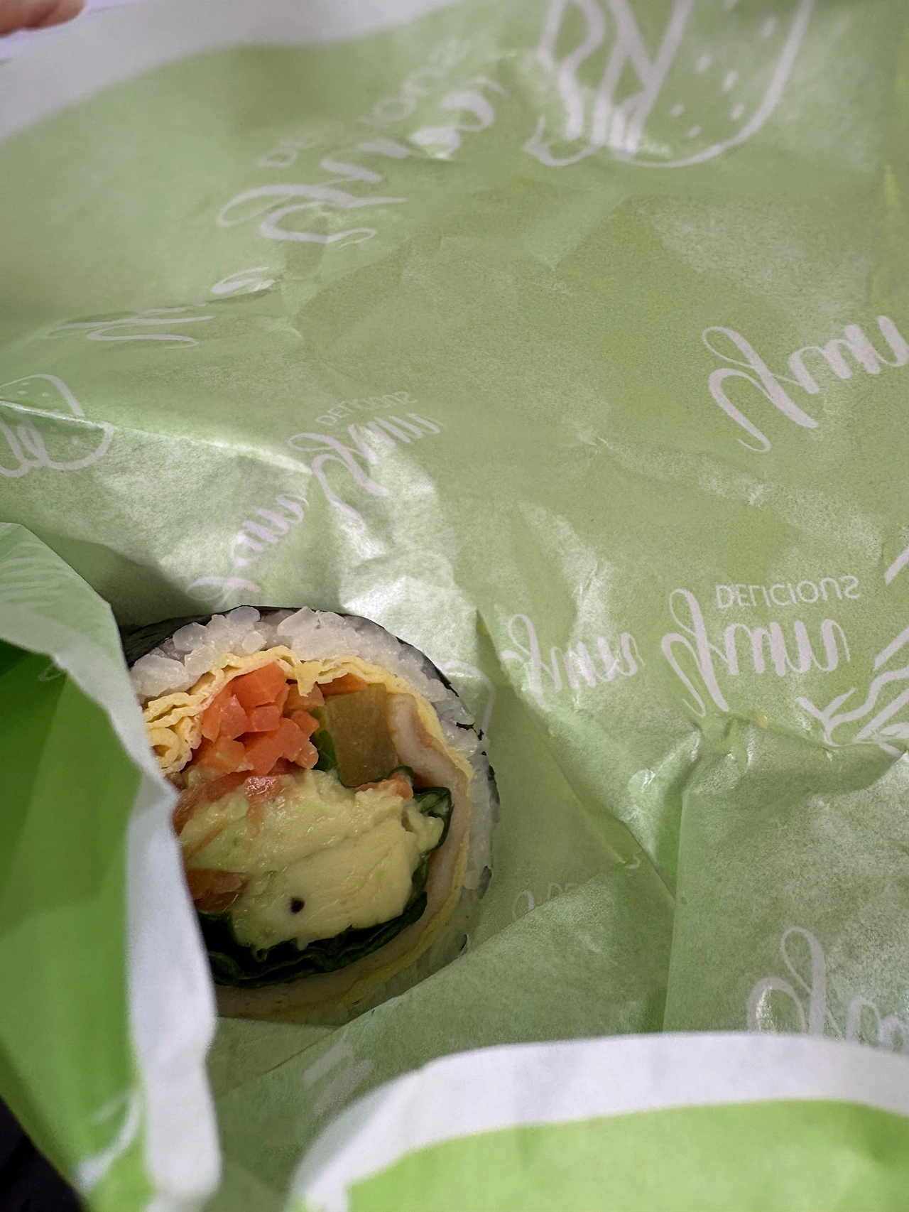 서울역을 지날 때마다 매번 10000원 아보카도 계란 김밥을 보며 입맛만 다시다가 부산 구포 시장에 와서 5500원 아보카도 김밥 한 줄을 사고 행복해졌다. 사자마자 두 개 맛보았다. 아보카도 맛이 김, 깻잎, 계란과 잘 어울리며 입안에 퍼졌다. 단무지를 별로 안 좋아해서 단무지만 없었으면 완벽했을 거 같다.