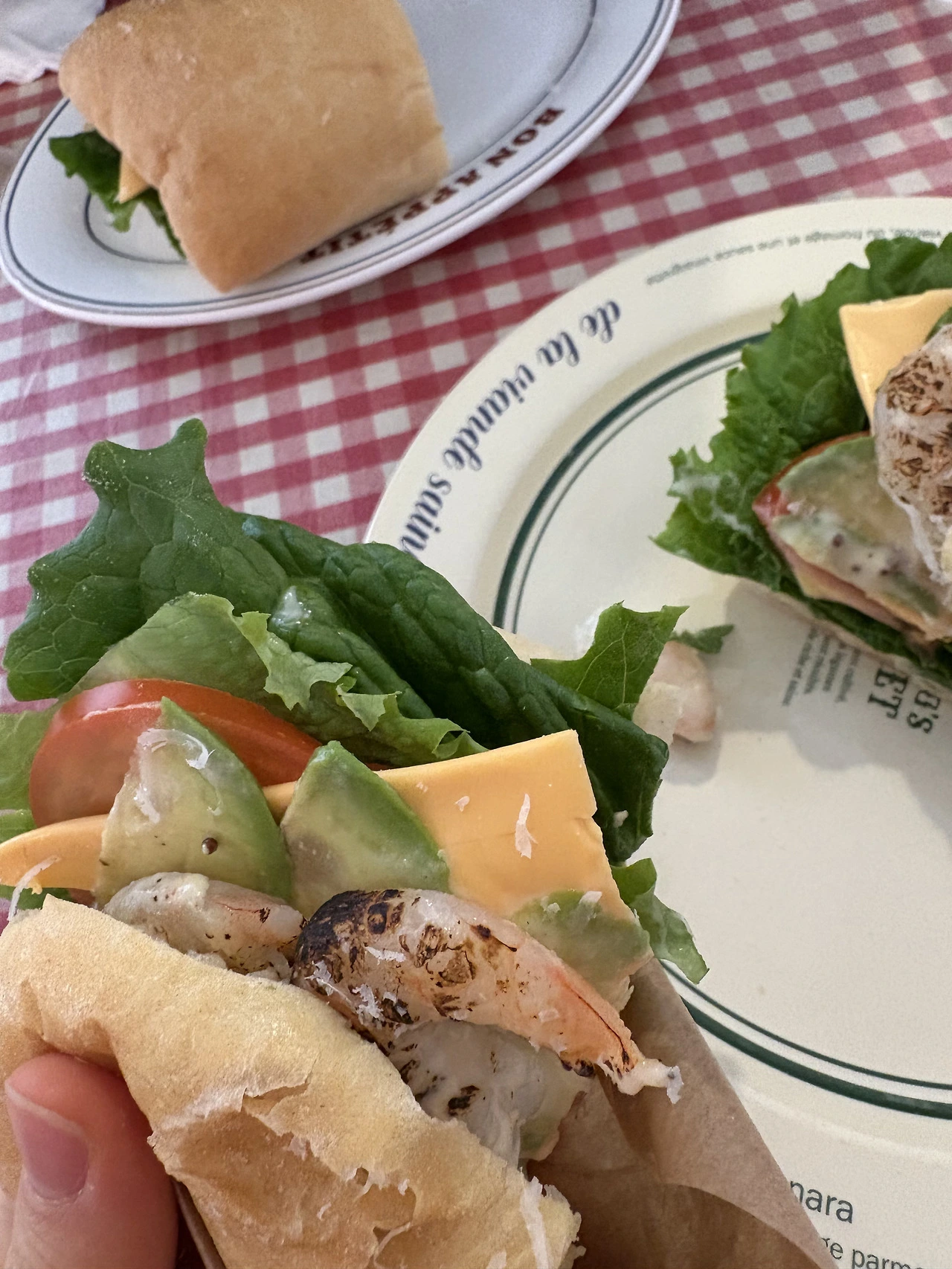 치아바타 빵이 무척 쫄깃하고 맛있어서 둘 다 감탄하며 먹었다. 갈릭, 오일 맛과 새우도 잘 어울리고 맛있었고 겹겹의 로메인상추, 토마토, 아보카도!!! 까지 맛있었다. 갈색의 뽀글 머리 중년? 노년? 아주머니 한 분이 우리가 다 먹을 때쯤 노란 선글라스와 회색 패딩을 입고 혼자 들어오셨는데 피부가 너무 반짝반짝하고 얼굴 표정이 좋으셔서 눈길이 갔고 기억이 남는다.