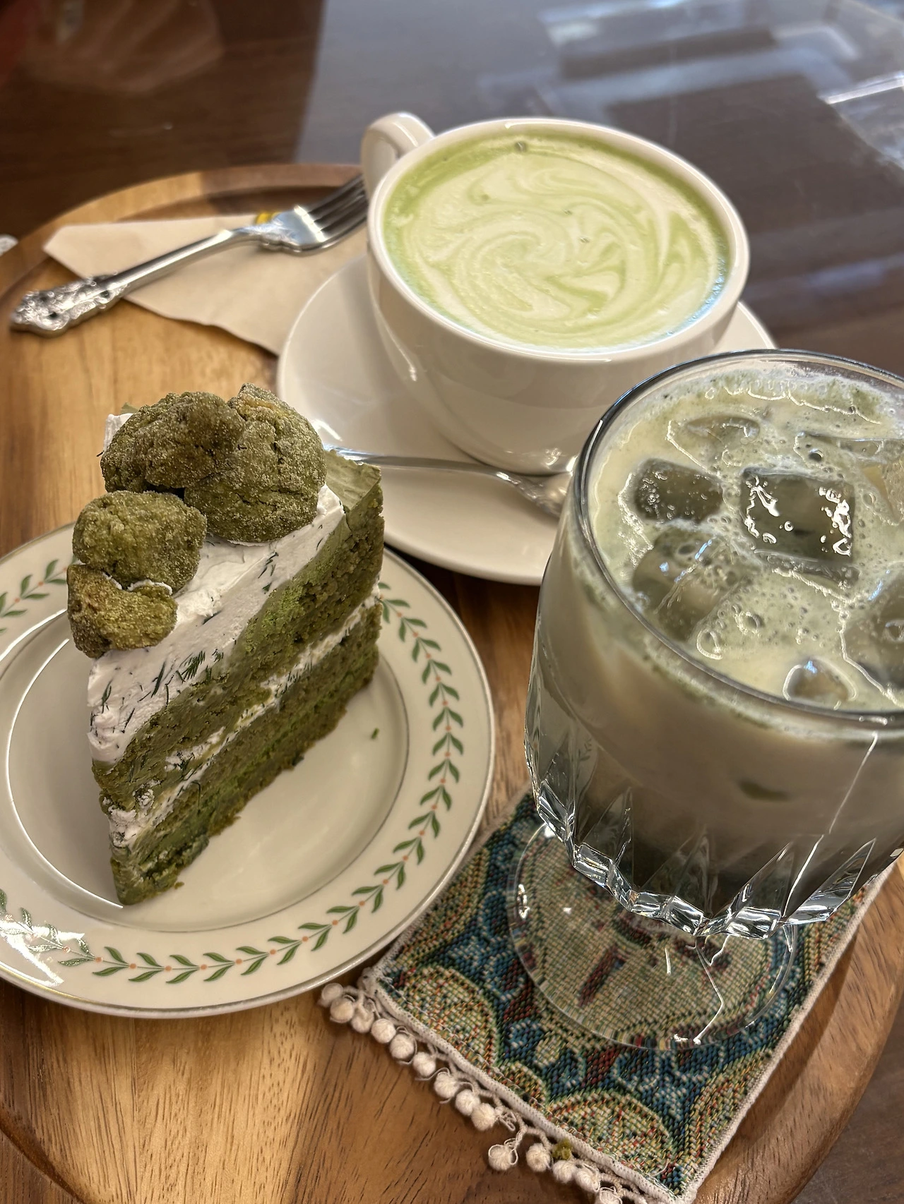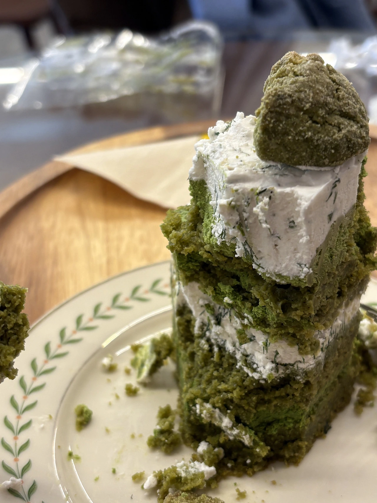 우리는 걷는 걸 좋아하는데 오늘은 -10도로 너무 추워서 앉아서 수다 떨다가 바로 다음 목적지인 카페로 갔다. 비건 디저트 카페 라므아르. 우유 대신 두유, 오트밀크, 국산 현미, 아몬드 가루, 말차와 허브 딜을 넣은 ‘말차 딜 케이크’를 나누어 먹었다. 나는 쑥라떼, 친구는 말차 라떼를 마셨는데 다음엔 두 가지 종류나 되는 쑥케이크를 맛보러 또 오고 싶다는 생각을 했다.