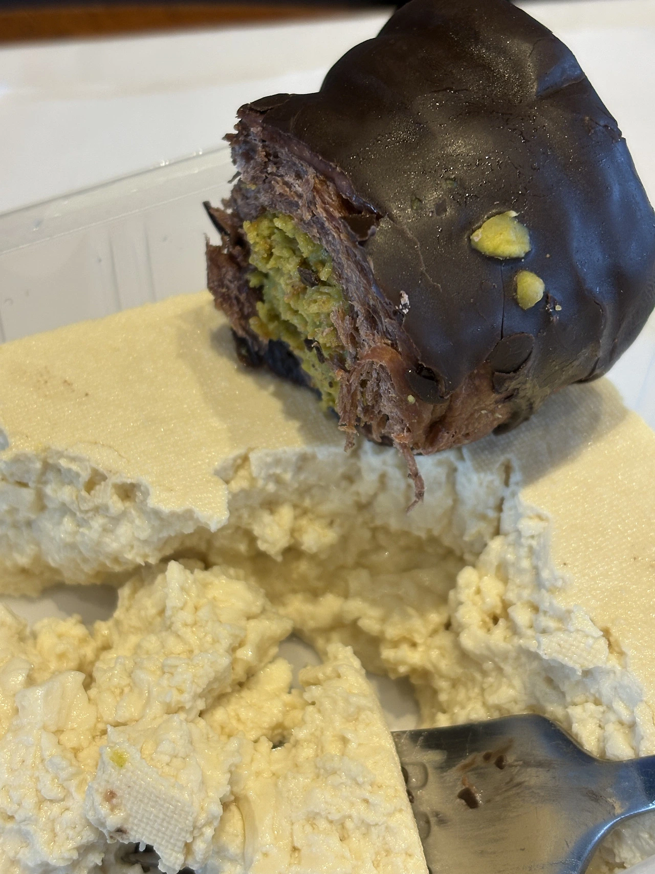 근데 그 케이크는 카다이프가 너무 딱딱해서 겨우 먹었다. 맛있게 빠작한 초코 피스타치오 빵과 두부를 같이 먹으니 맛있었다.