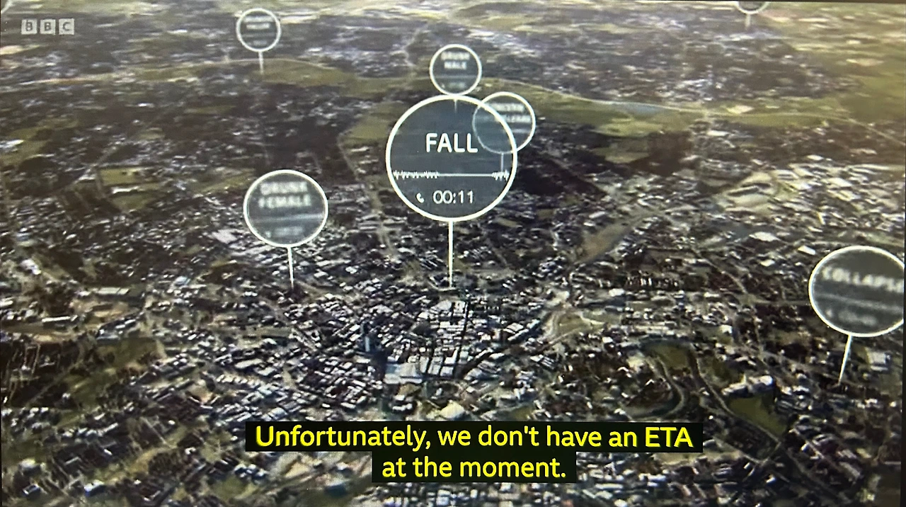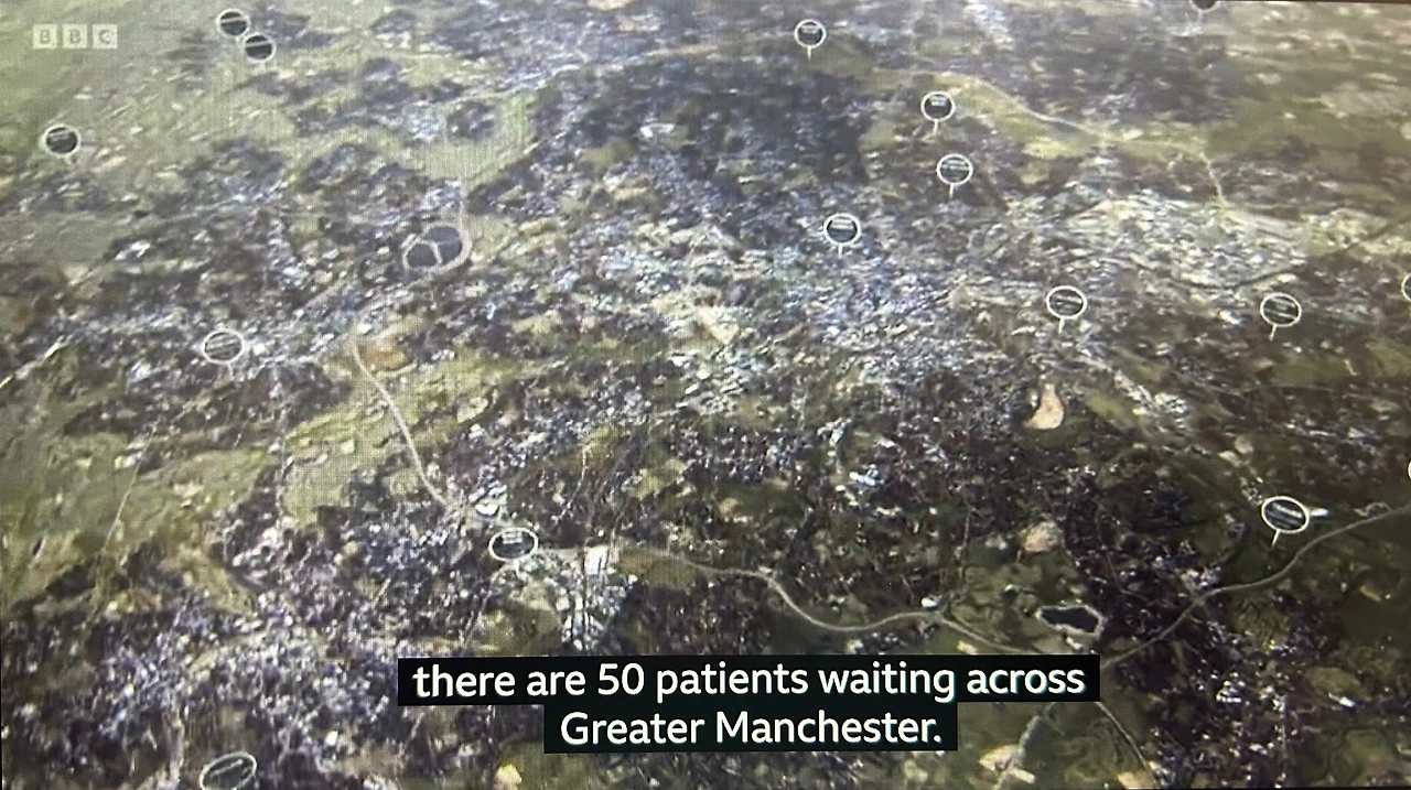 눈에 띄는 것은 대기자들의 수입니다. 위성사진 위에 구조 요청이 들어온 위치와 구급차들 위치가 표시됩니다. 과장도 미화도 없이 bbc는 어느 새벽 멘체스터 지역에 환자들이 길게는 몇 시간씩 구급차를 기다리는 상황을 보여줍니다.