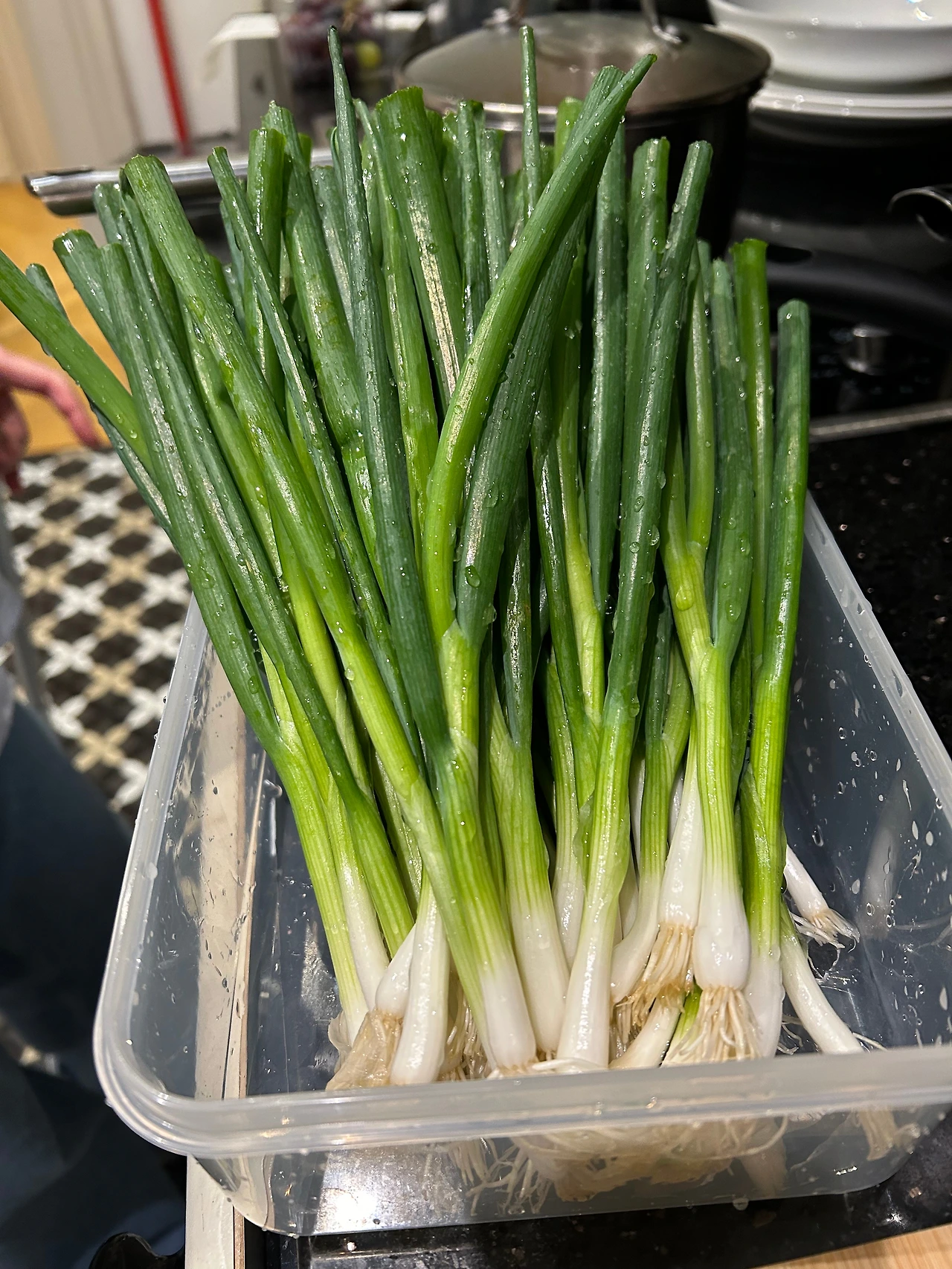 그럼 만들어 먹자. 일단 장보기부터. 런던에선 쪽파를 본 적이 없다. 그나마 비슷한 걸로 웨이트로즈에서 파는 샐러드 어니언으로 대체 가능. 쪽파보다는 조금 더 굵고 질긴 느낌이 있으나 이 정도면 준수하다.