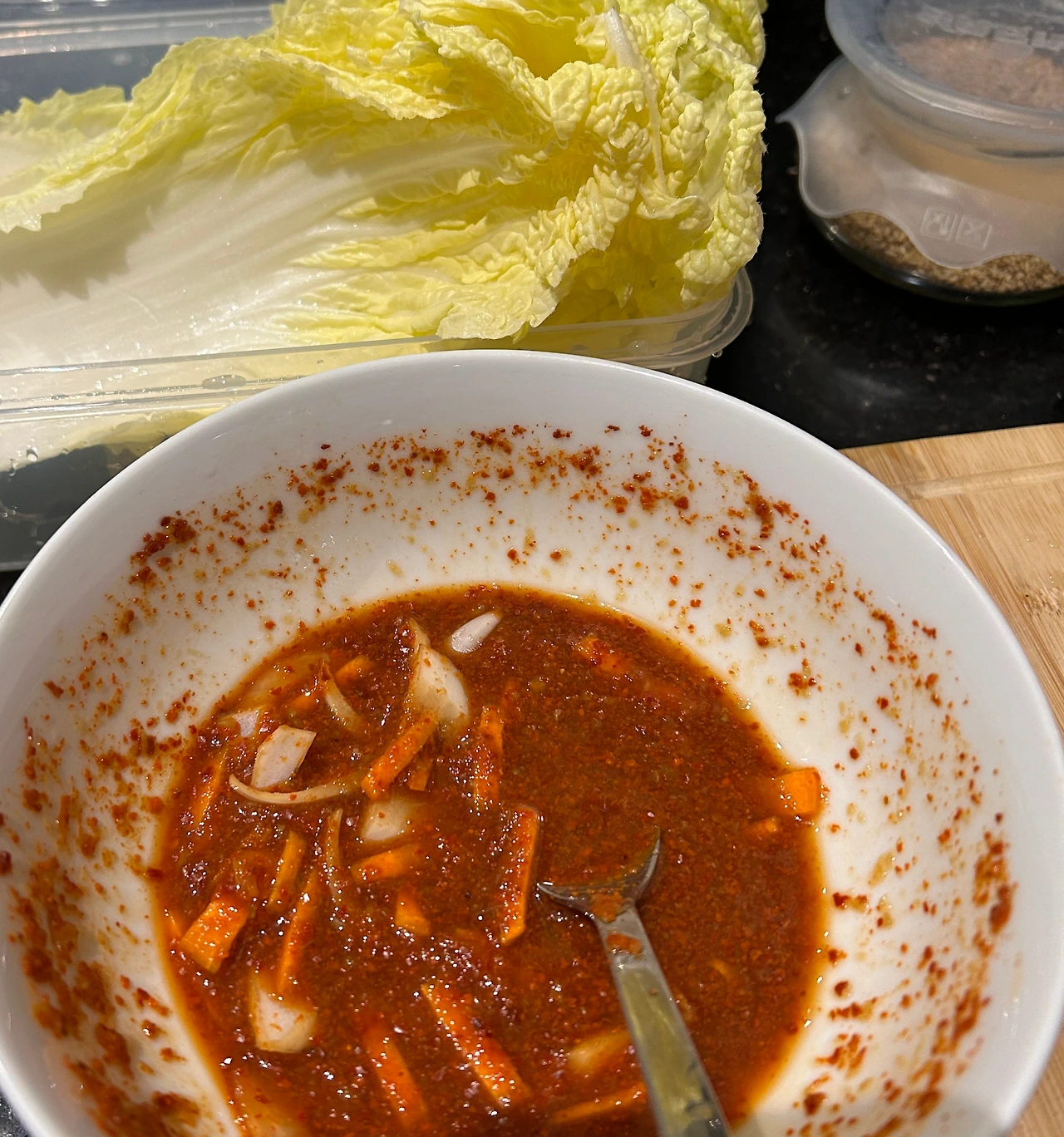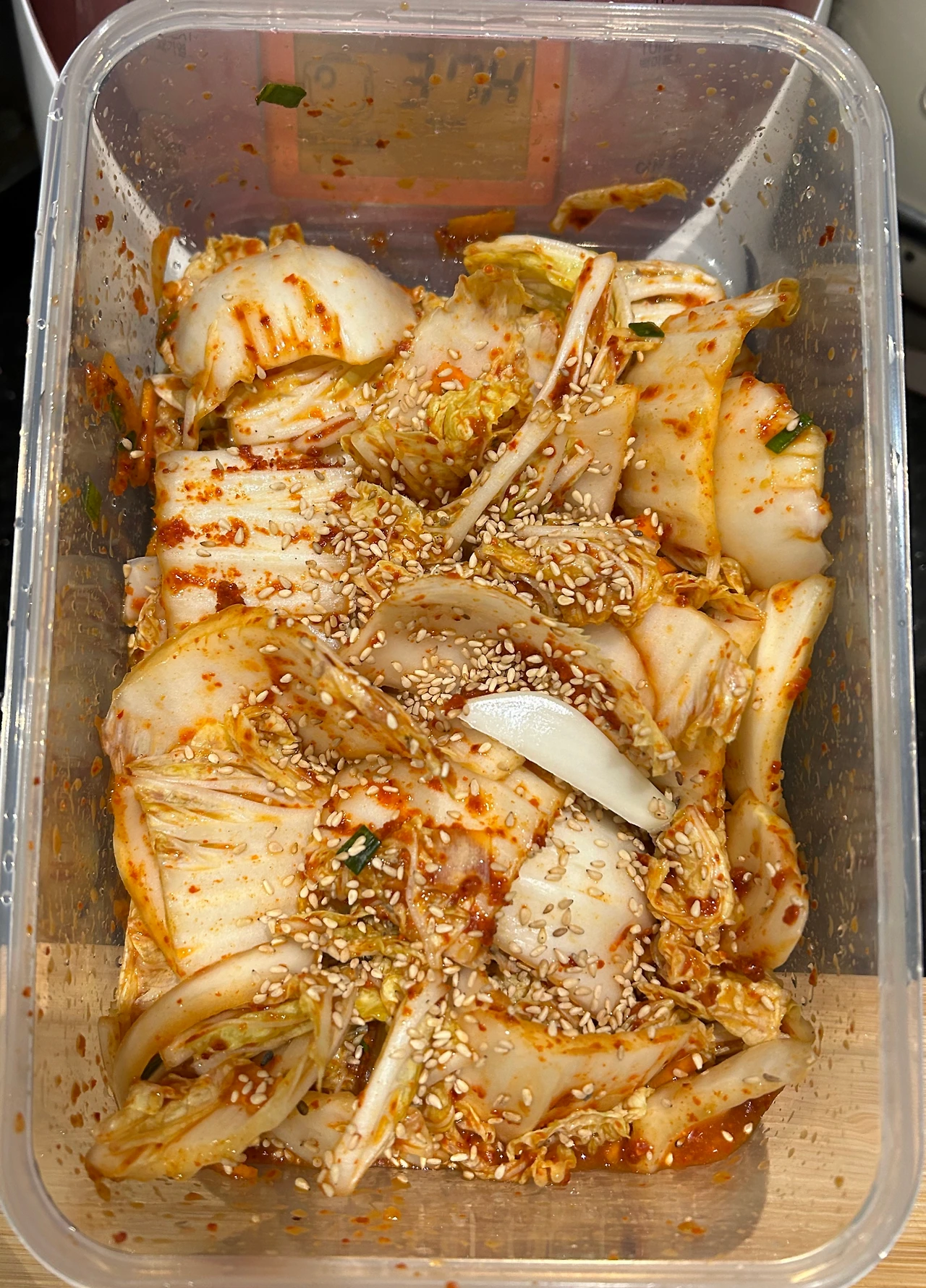 그런데 양념이 애매하게 남는다. 이럴 땐 당황하지 않고 냉장고에 있던 배추를 몇 잎 뜯어서 버무려보자. 여기선 배추를 왜 차이니즈리프라고하는가. 설날도 차이니즈뉴이어라고 하더니. 서경덕 교수는 뭐 하는가. 영국에 와서 저 차이니즈 표기 좀 바로잡지 않고?