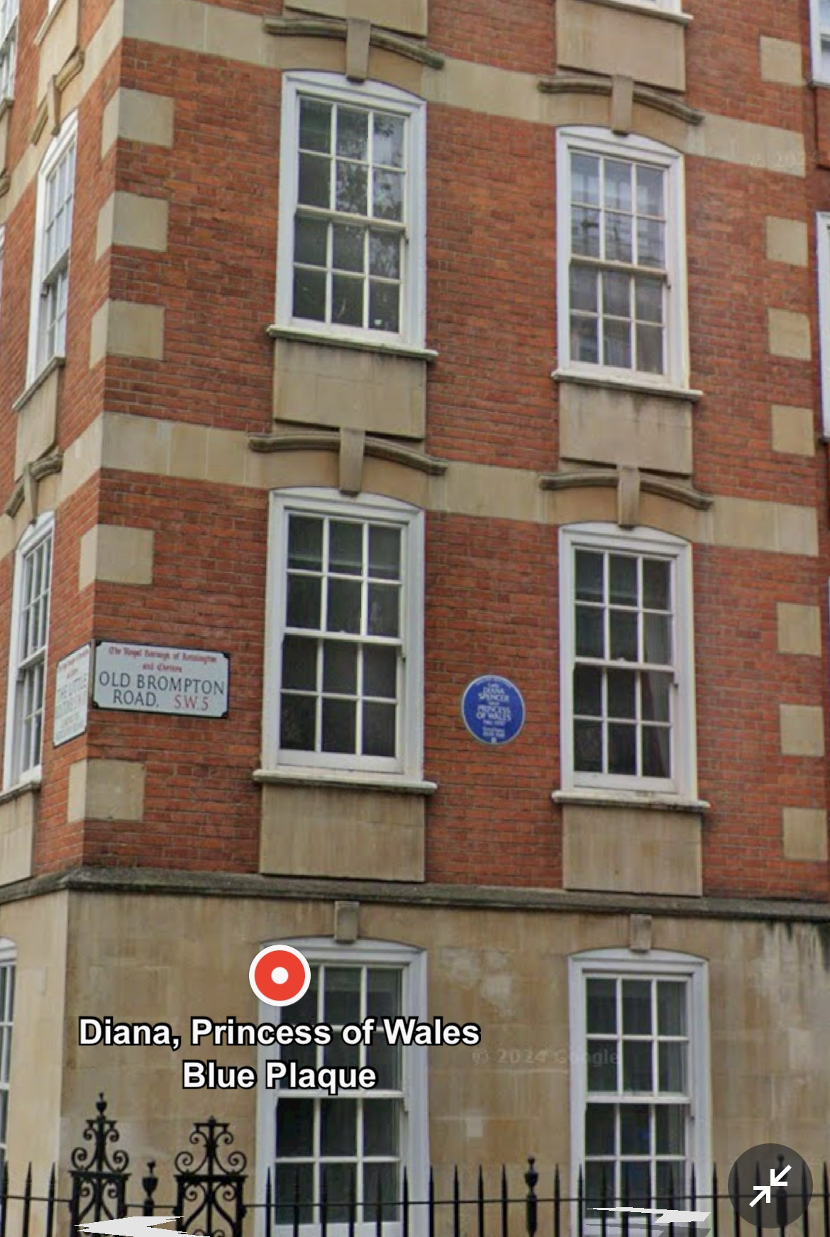 박물관도 아니어서 관광지로 추천할 곳은 아니지만 다이애나를 그리워하는 사람들은 종종 찾아가기도 한다. 안에 들어가볼 수는 없다. 건물 퍼스트 플로어 외벽에는 다이애나가 살았던 건물이라는 파란색 금속판 표시가 있다.