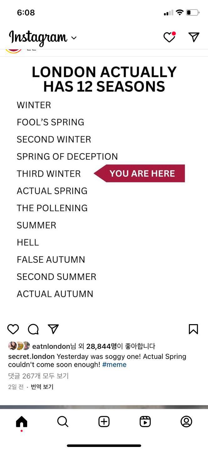 구글에 fool's spring을 검색하면 전세계 곳곳에서 사람들이 올린 우스개를 볼 수 있다. 어디는 계절이 10개다, 어디는 12개다…겨울 뒤에 바로 봄이 올 것 같지만 또다른 추위가 왔다가 다시 따뜻해졌다가 또 한두 번은 춥다, 뭐 그런 식이다. 한국 같으면 꽃샘추위 한 단어로 퉁칠 텐데 왜들 저러고 노나 했다.