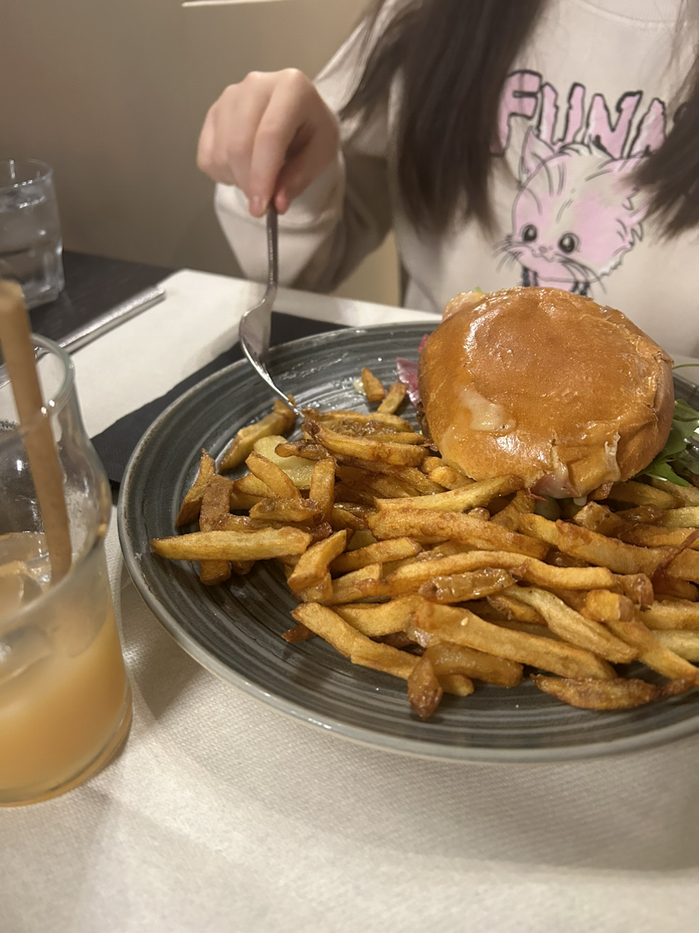 연어가 들어간 크림소스 국수에 화이트 와인 한 잔, 아이는 버거와 주스. 배가 고파서인가 프랑스 음식이어서인가. 너무너무 맛있게 먹었다. 식사량이 적은 편인 아이도 게눈 감추듯 클리어. 새벽에 집에서 나온 뒤 오후 1시가 넘어서 먹은 식사라서 맛있었을 수도 있다. 여튼 우리는 대만족.