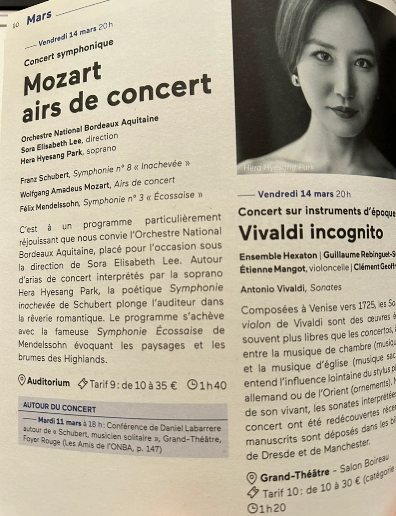 대극장 내부로 들어가서 간단히 둘러봤다. 내부는 의외로 소박하다는 인상을 준다. 우린 화려한 것들을 너무많이 보아 왔다... 언젠가 이곳에서 공연을 보는 날이 있을까? 극장 안내 책자를 보니 한국인 음악가 공연도 예정되어 있다. 3월 14일에 소프라노 박혜상이 무대에 오른다.