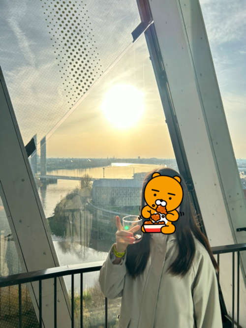 전시를 모두 보고 나면 8층에 올라가서 와인 한 잔을 시음할 수 있다. 와인 한 잔을 골라 들고 통유리창으로 가면 보르도 전경이 파노라마로 펼쳐진다.