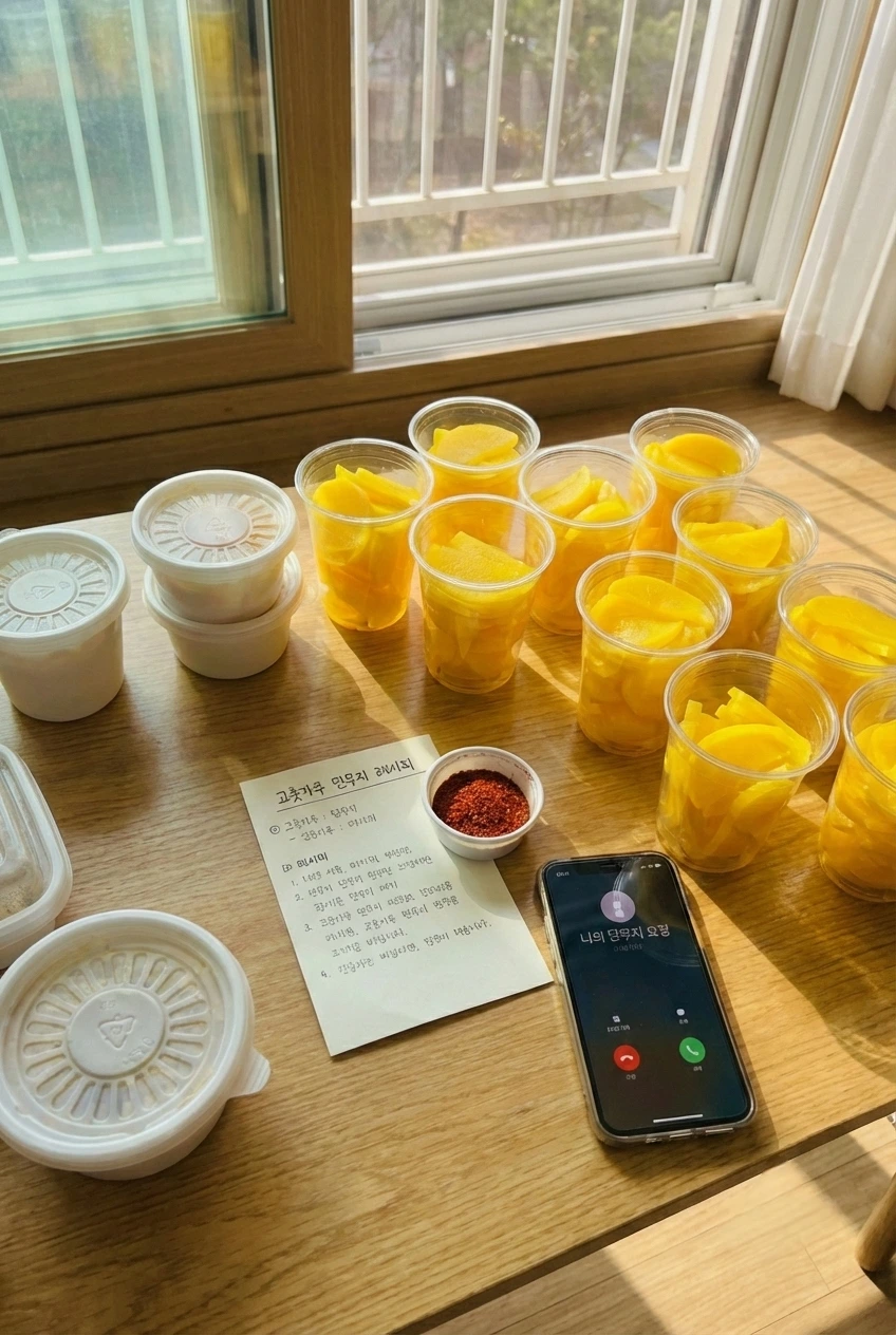 "난 단무지 좋아하지않아...""난 단무지 좋아""단무지가 좋아?""응!!!"배달음식이 올 때따다 단무지를 모이놨는데단무지 좋아하는 사람을 만났다고고추가루 뿌린 단무지.이 레시피는 누구한테 쓰지?이름 대신 저장한 '내 단무지~♡"