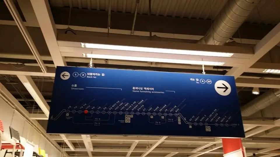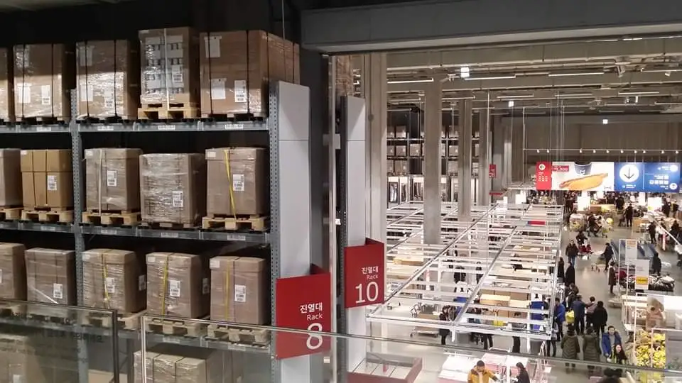 복잡한 미로지만 테마를 갖춘 매장배치,가구를 포함한 실내인테리어는 고관여구매상품이다 긴동선의 배치는 쇼핑시간을 늘리면서 자연스레 구매결단을 내릴 수 있게한 전략일것이다. 이는 그냥돌아서려는 소비자에게 천원대의 디자인 소품이라도 손에 쥐게해 이케아다라는 인상을 마지막으로 주면서도, 쇼핑 동선의 끝. 마지막 발걸음에 마주하게되는 거대한 자재보관 창고는 역시 이케아다라는 감탄사를 내뱉게한다
