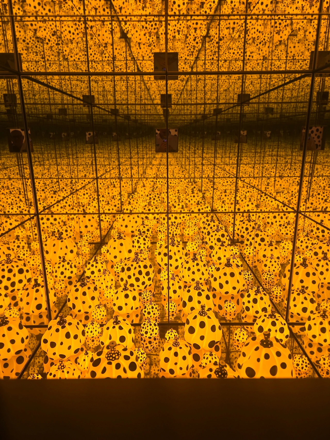 무한 거울 방(Infinity Mirror Rooms): 거울과 빛을 활용해 끝없이 반복되는 공간을 창조하여 관객에게 환상적이고 초현실적인 경험을 제공합니다.