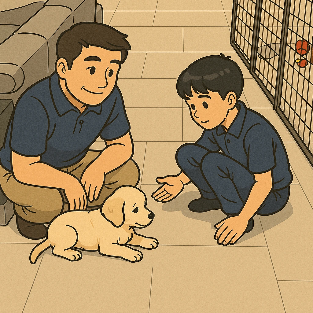 나는 문득, 이 모든 시간이 단순히 강아지 훈련이라는 행위 너머에 사랑과 성장, 그리고 마음의 대물림이 숨어 있다는 걸 느낀다. 네가 치카에게 보여주는 그 따뜻한 눈빛은 어쩌면 내가 매일 너를 바라보며 보내온 수없이 많은 눈빛들 속에서 자란 것이다.