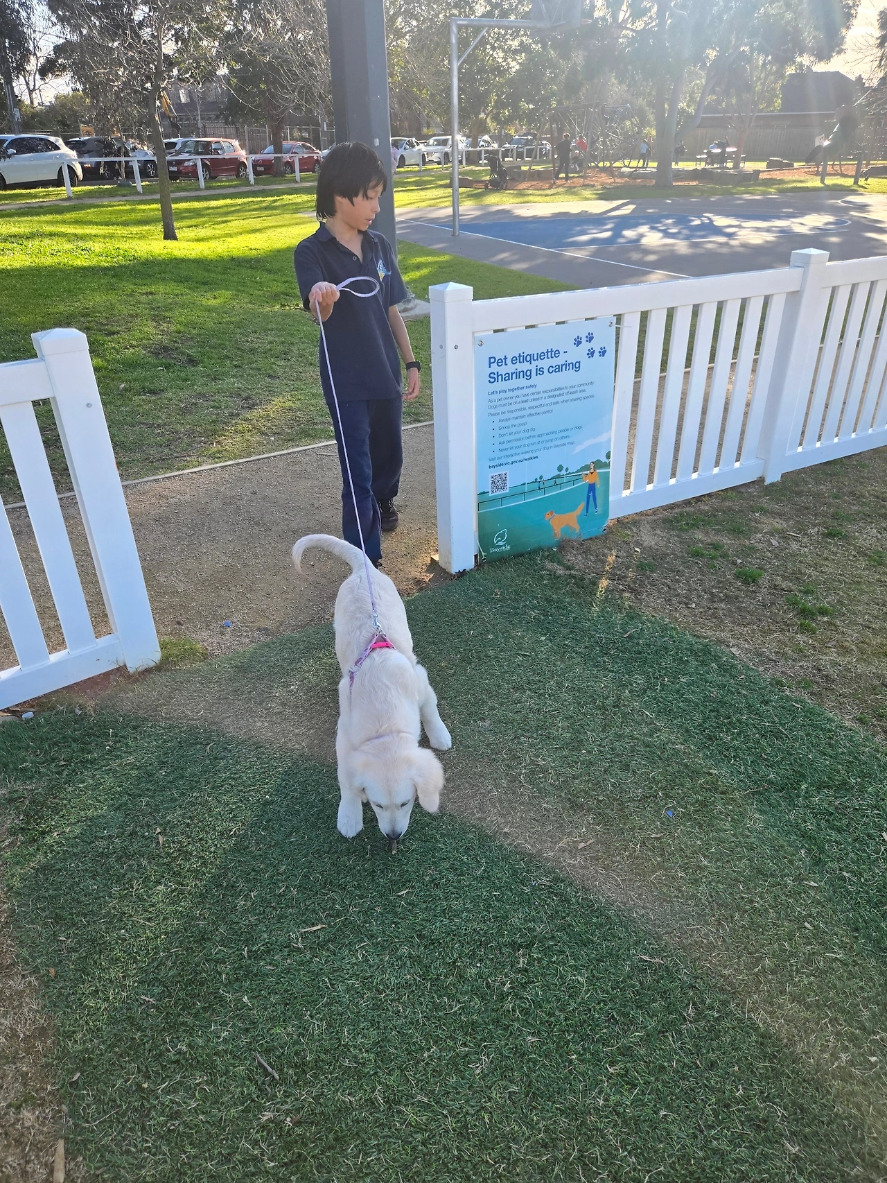 행복이를 학교에서 픽업한 후, 날씨가 좋아서 치카를 데리고 강아지 공원에 갔다. 오늘의 주인공은 단연 치카였다. 그녀는 공원에 있는 모든 사람들에게 꼬리를 흔들며 인사를 건넸고, 낯선 강아지들과도 제법 잘 어울려 놀았다.