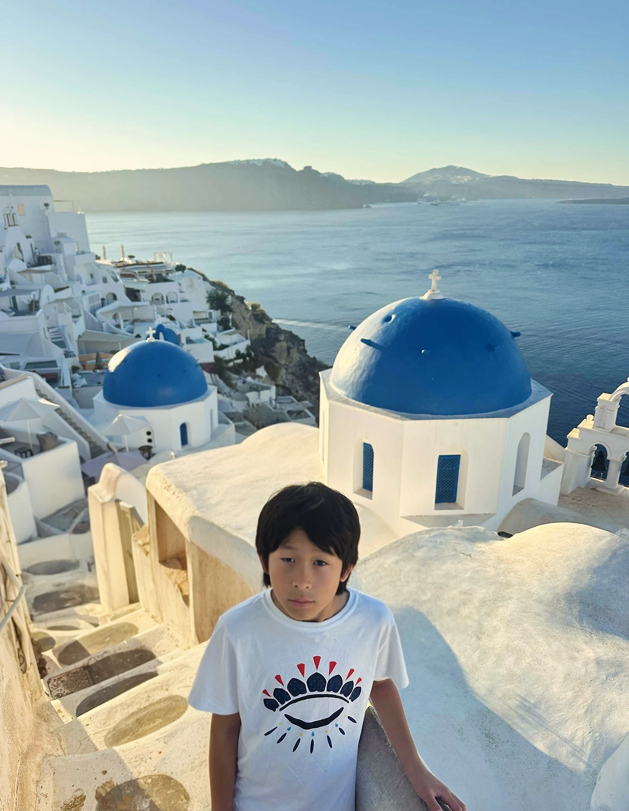목적지는 세 개의 파란 지붕이 한눈에 보이는 가장 유명한 포토 스팟. 하지만 그곳에서 우릴 기다린 건 끝없는 줄이었다. 아침 7시, 아직 이른 시간인데도 이미 수십 명이 줄을 서 있었다. 우리는 무려 한 시간을 기다려야 했다. 행복이는 “꼭 여기서 찍어야 하냐”며 투덜거렸고, 스티븐은 “다른 장소도 좋은데 굳이…”라며 설득하려 했다. 하지만 나는 단호했다. “여기서, 이 자리에서 찍어야 한다.”
