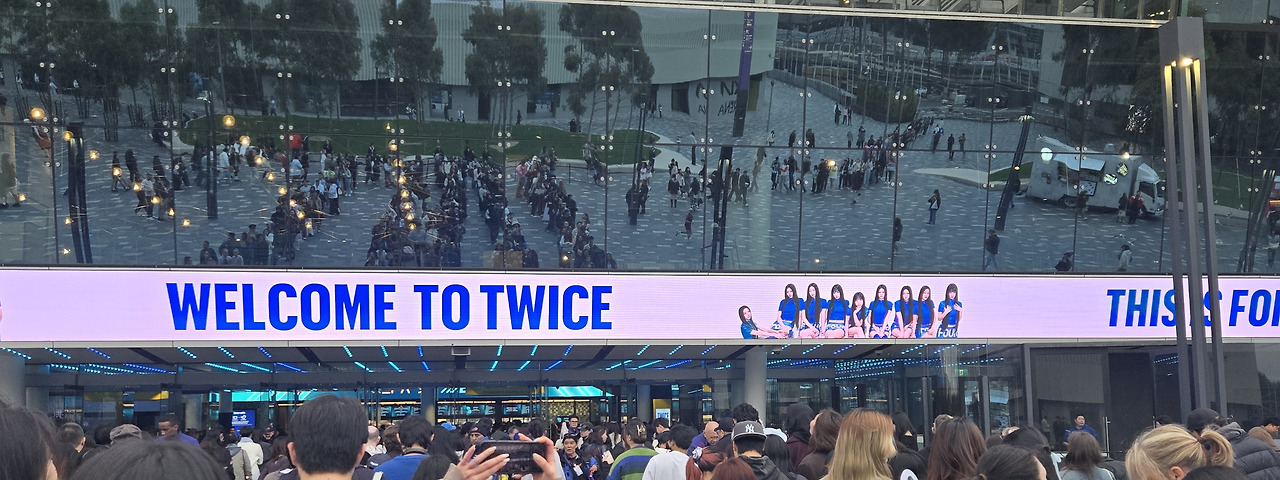 오늘은 처음으로 한국 가수의 공연을 멜버른에서 보게 되었다. 사실 그동안 기회가 여러 번 있었지만, 일과 일정이 맞지 않아 늘 놓치곤 했다. 그런데 이번엔 달랐다. 트와이스의 멜버른 공연을 무려 19년 만에 처음 가보는 한국 가수 콘서트였다.