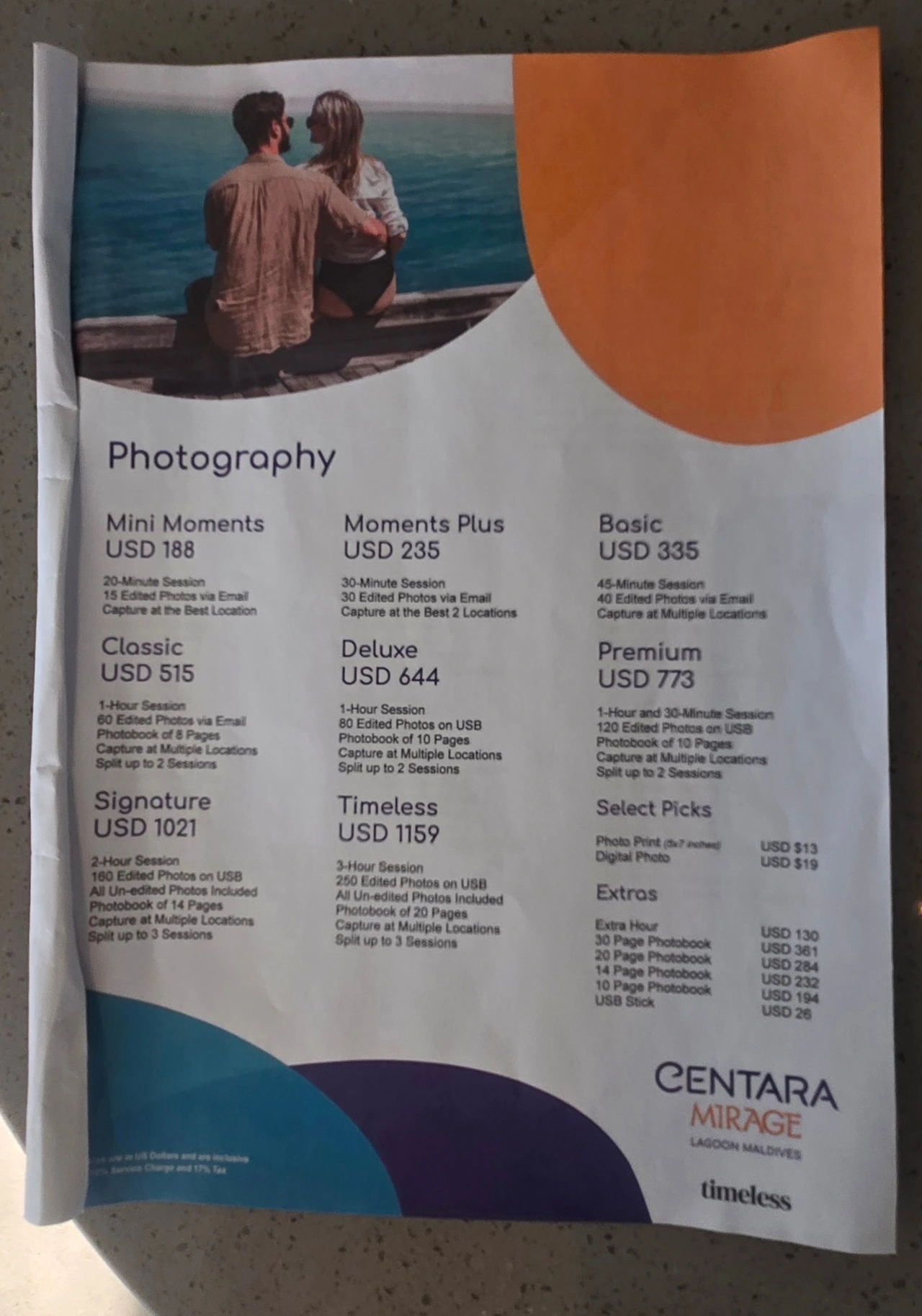 우리 기념일을 위해 리조트에서 제공하는 장식과 샴페인, 케이크를 직접 준비해 주었다. 오늘은 무료 30분 사진 촬영도 예약해 주었고, 30분 무료 마사지까지 받을 수 있도록 연결해 주었다. 놀라운 것은 이 모든 것이 추가 비용 없이 진행되었다는 점이다. 그런데 그녀에 도움이 없었다면 불 가능 했다.