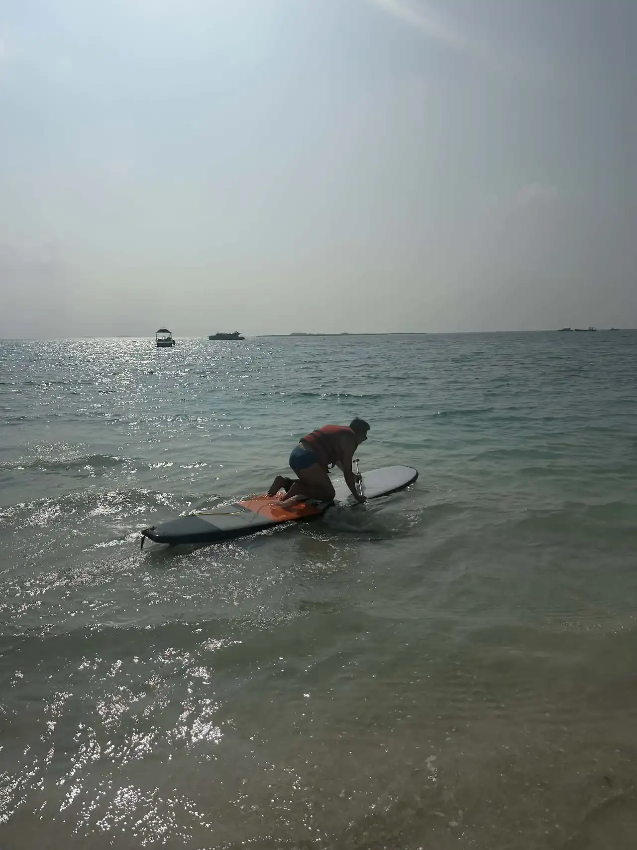 그 말을 듣고 방향을 바꾸었고 겨우 발이 닿는 지점까지 갔다. 그제야 숨을 제대로 쉴 수 있었다. 짧은 순간이었지만 몸은 이미 긴장으로 굳어 있었다. 죽는 줄 알았다. 더 이상 워터 플레이에서 노는 것은 불가능해서 스탠딩 보드에도 도전했다. 그런데 그것 역시 생각보다 쉽지 않았다.