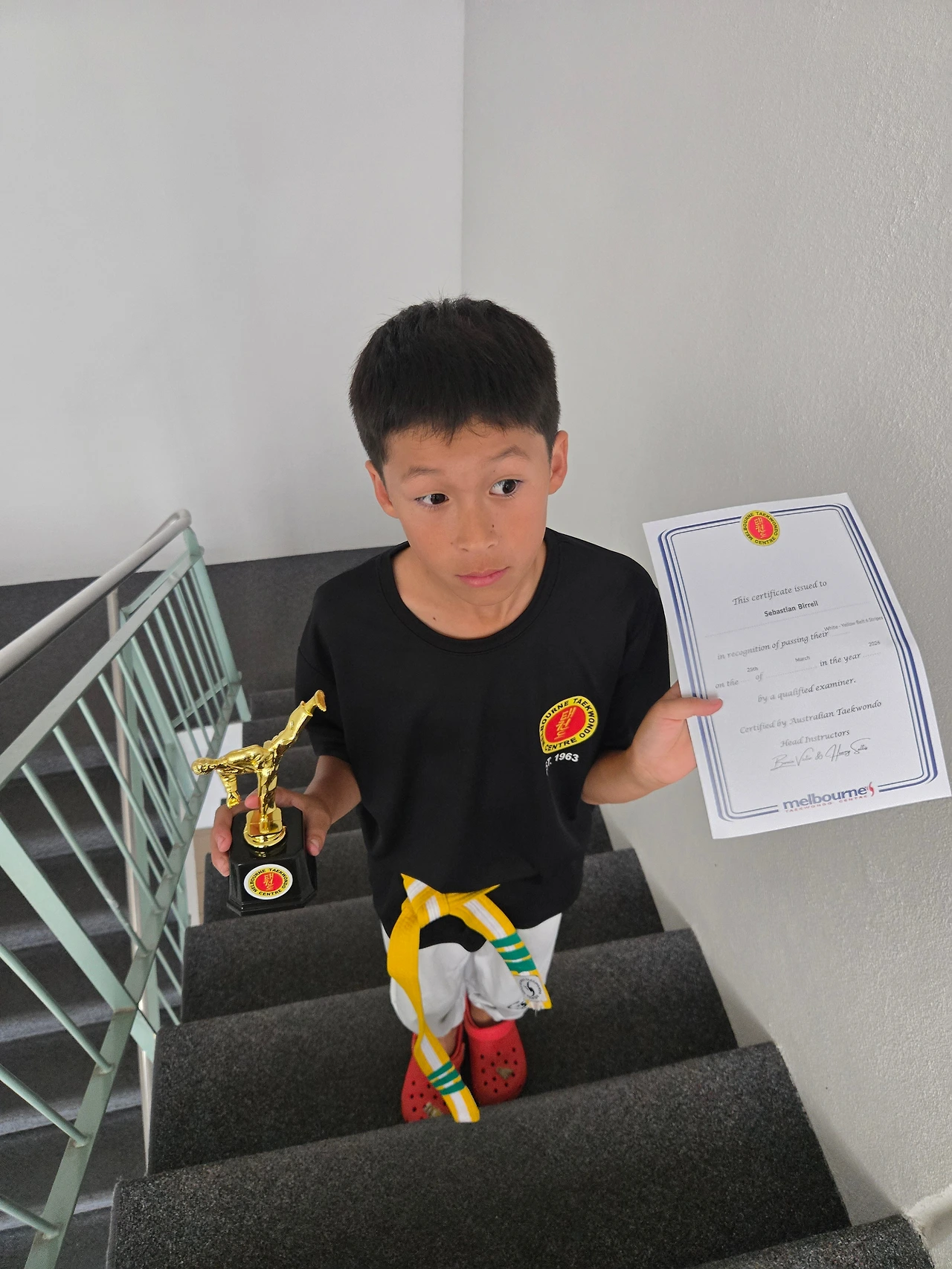 그리고 최근에 다시 시작한 Taekwondo에서도 두각을 보이고 있다. 내가 한국 사람이기에 태권도를 선택했지만 이번 단 시합에서는 ‘가장 많이 발전한 선수’ 상을 받았다. 그 상을 받는 모습을 보면서 나는 확신했다.