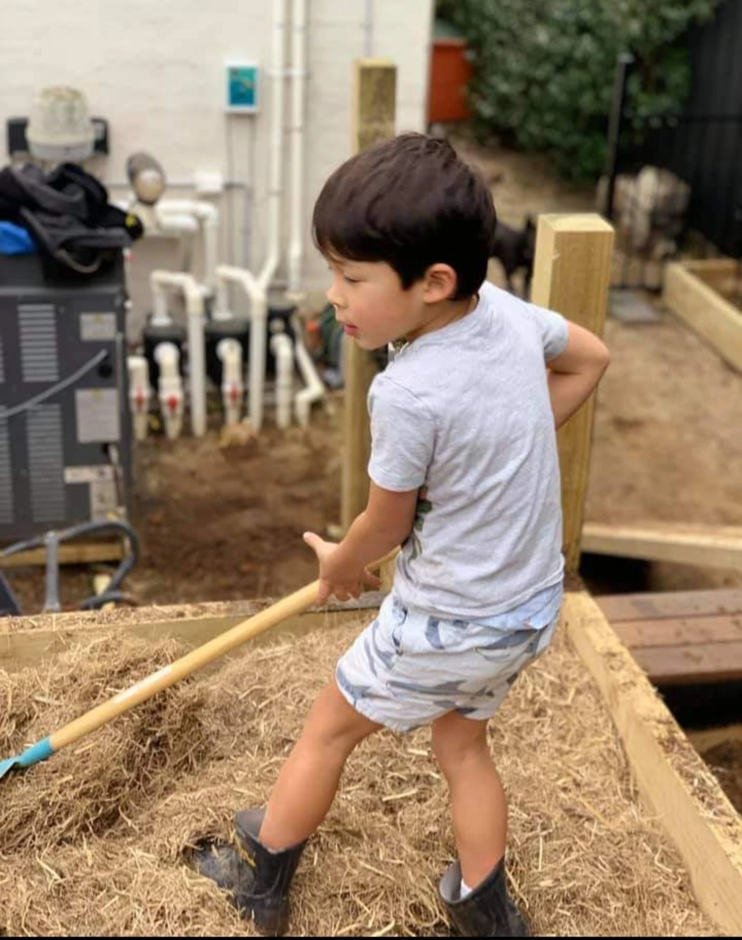 그래서 나는 내 기분을 돌볼 수 있는 방법으로 텃밭을 만들어서 채소를 돌보고 기르기로 했다. 그런데 우리 집에 아직까지 채소를 기르는 공간이 따로 없다. 그래서 행복이와 함께 채소밭을 만들기로 했다. 스티븐이 솜씨 좋게 뒷마당 한 공간에 텃밭 상자를 만들어 주었다. 나무 사이 지지대를 대주고 상자 테두리 안에 흙이랑 거름이랑 뒤섞어서 넣어 주었다. 이 모든 과정을 행복이도 팔 걷어 부치고 열심히 도와주었다.