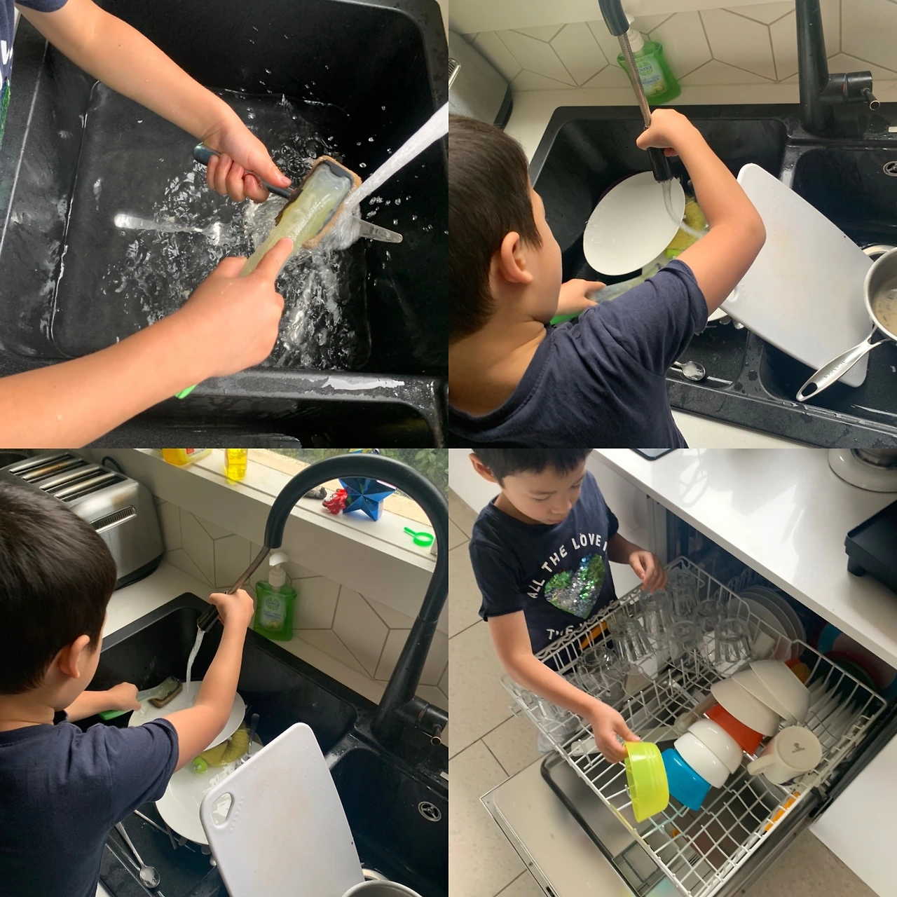 최소한 밥 먹고 접시는 씽 그대에 놓고 설거지도 가끔 하고 식기 세척기 정리하기 등 나는 공부에 초첨을 맞추지 않고 남을 도와주고 배려하는 것을 가르치기 시작했다. 공부는 솔직히 무형의 것이다. 아무리 공부를 열심히 해도 확인하는 결과는 시험을 보거나, 말로 아니면 글로 표현하는 방법뿐이다. 그런데 행복이가 집안일을 도와주면서 자신의 눈으로 결과물을 직접 볼 수 있으니 좋아했다. 그리고 공부처럼 시간이 오래 걸리지도 않는다.
