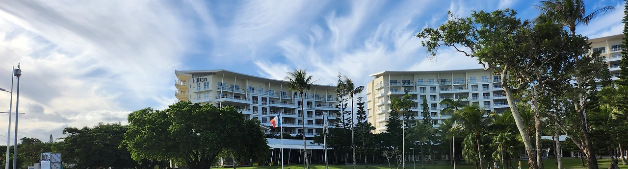 비와 바람이 휘몰아치는 날, "더블트리 바이 힐튼 누메아 일로 마이트리 리조트"에 처음 발을 디뎠다면 어떤 느낌이었을까? 고개를 들어 이곳을 지상 낙원이라 느낀 내가, 흐린 하늘 아래의 이 리조트를 또한 낙원으로 받아들였을까? 이런 생각이 들면서 여행에 날씨가 얼마나 큰 영향을 미치는지 다시 한번 깨닫게 되었다.