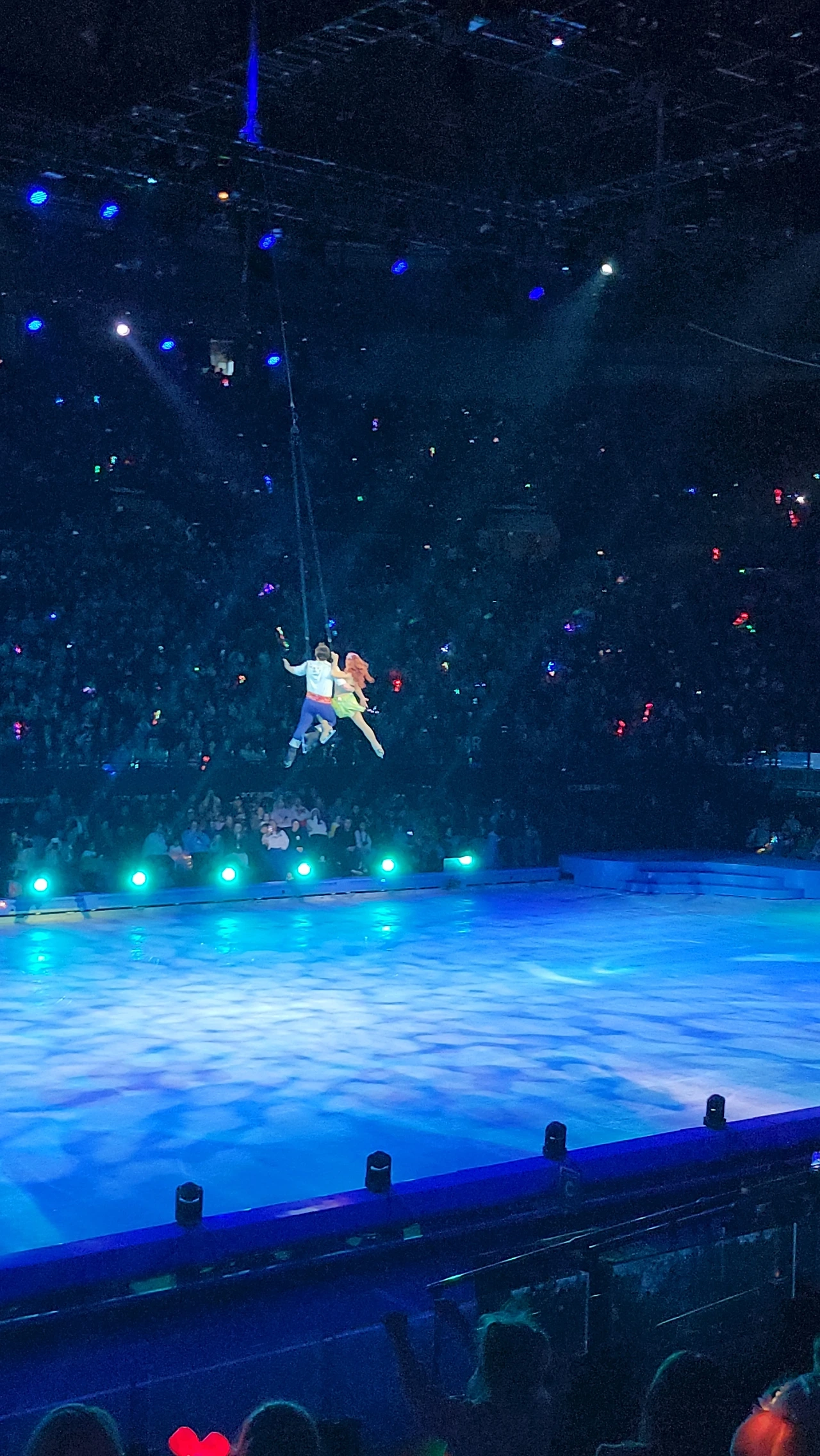 스티븐이 공항으로 떠나고 난 후, 행복이와 저는 디즈니 온 아이스를 보러 갔습니다. 어제 추가로 일을 하여 번 돈으로 좋은 자리의 티켓을 구매할 수 있었기에, 이를 통해 행복이와 함께 저희가 좋은 위치에서 쇼를 즐길 수 있었습니다.
