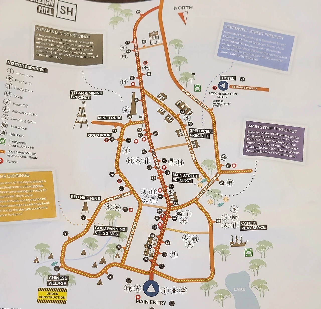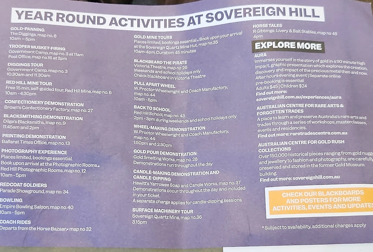 드디어 차례가 돌아와 입장을 했고, 저희는 소버린힐의 과거 금광 마을의 모습에 감탄했습니다. 많은 사람들이 이곳에서 금을 캐는 체험도 해보고, 옛날 사람들이 어떻게 생활했는지 볼 수 있는 다양한 전시도 즐겼습니다. 역사적인 배경을 알 수 있는 안내 설명도 매우 흥미로웠고, 저희는 시간 가는 줄 모르고 이곳을 살펴봤습니다.