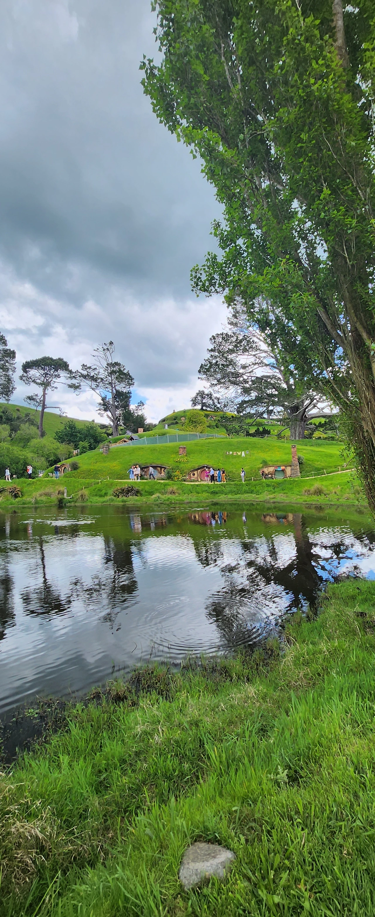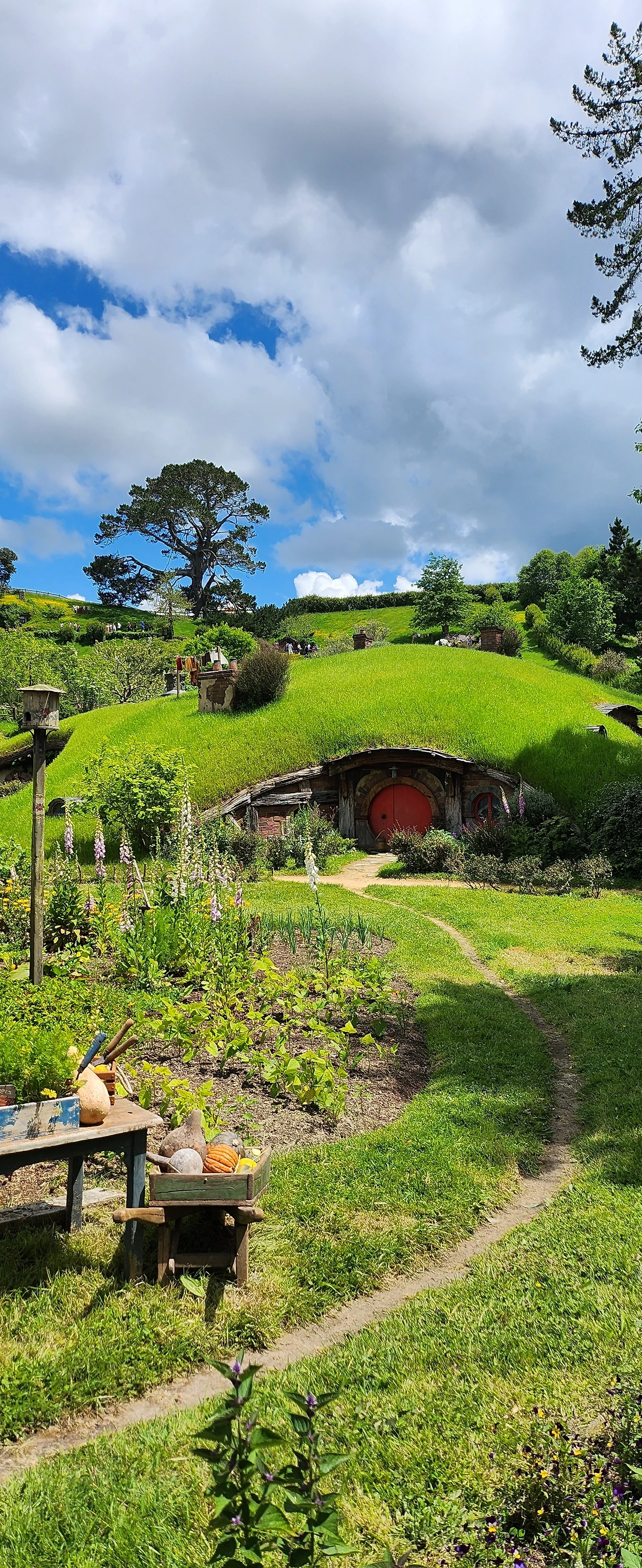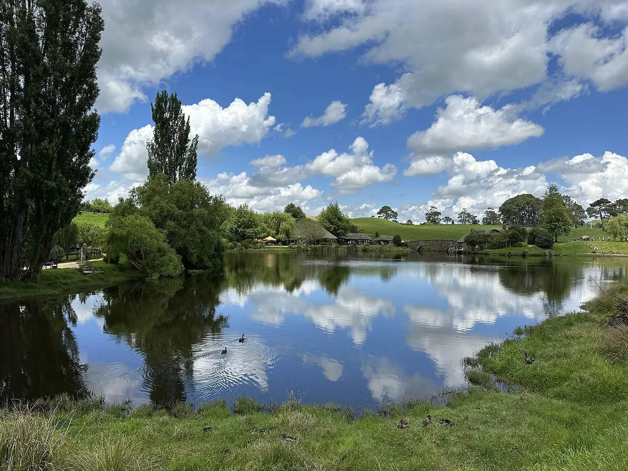 호빗 촬영지에 도착한 순간부터, 우리는 마치 진짜 중간계로의 여정을 시작한 듯한 착각에 빠졌습니다. 영화 속에서 보았던 것들이 생생하게 재현되어 있어, 모든 것이 실제로 만져보고 체험할 수 있는 곳이었습니다. 마치 시간 여행을 한 것처럼, 과거로 거슬러 올라간 듯한 그런 느낌이었습니다. 잘 정돈된 작은 호빗의 집들, 그 위를 뒤덮고 있는 푸른 잔디 지붕, 그리고 둥근 문과 창문들은 정교하게 만들어진 세트장의 흔적을 전혀 찾아볼 수 없게 했습니다.