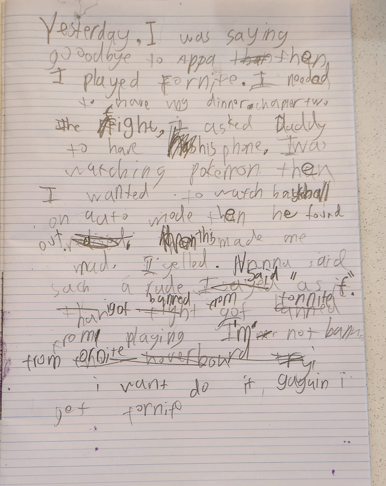 그는 혼자 방 안에서 조용히 그림을 그리고 있었습니다. '안녕, 아들, 오늘 하루 어땠어?'라고 물으니, 행복이는 '음, 그냥 그래요'라고 담담하게 대답했습니다. '정말 아무 일도 없었던 거야?'라고 다시 물었을 때, 그는 '대디가 더 이상 게임을 못하게 한다고 해서 어떻게 해야 될지 모르겠어요'라고 말했습니다.