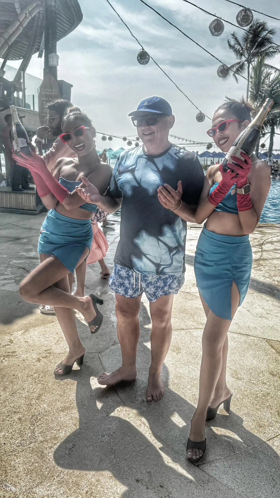 아침부터 우리는 빌라 근처 핀 비치 클럽에서 스티븐의 생일을 기념하는 파티를 시작했습니다. 푸른 바다를 바라보며, 따스한 햇살 아래, 우리는 모여 함께 기쁨을 나누었습니다. 파티는 신선한 과일, 현지에서 만든 빵, 다양한 음료로 가득 찬 풍성한 점심과 함께 시작되었습니다. 모두의 얼굴에는 행복한 웃음꽃이 피었습니다.