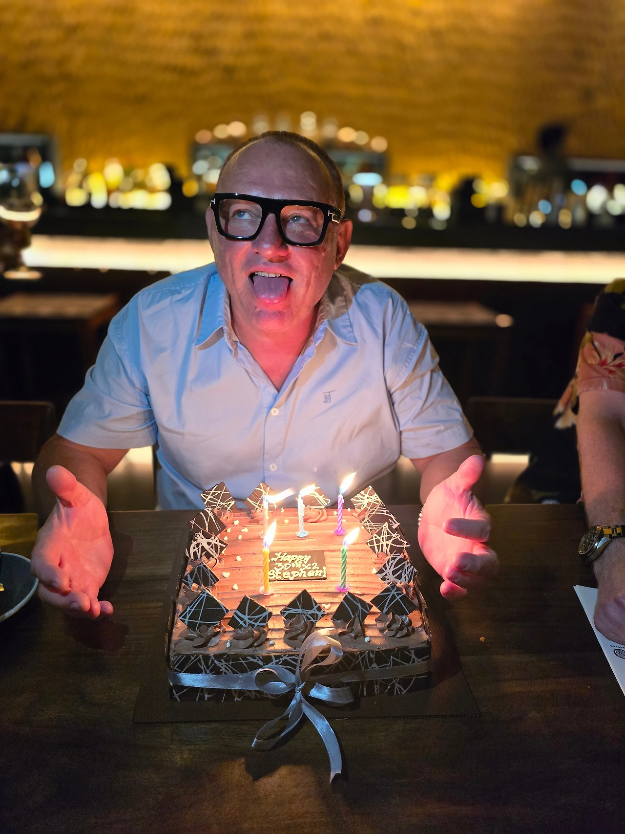 그 순간, 한 지인이 호주도 아니고 발리에서 누가 케이크를 구입했는지 물었습니다. 저는 재치 있게 아이들이 구입했다고 답했습니다. 사실 케이크 준비는 제가 스티븐 아이들에게 부탁하여 진행한 일이었습니다. 하지만 여행사 사기 사건으로 인해 생긴 금전적 손실로 인해 스티븐이 아이들이 케이크 비용을 지불한다고 한 것입니다.