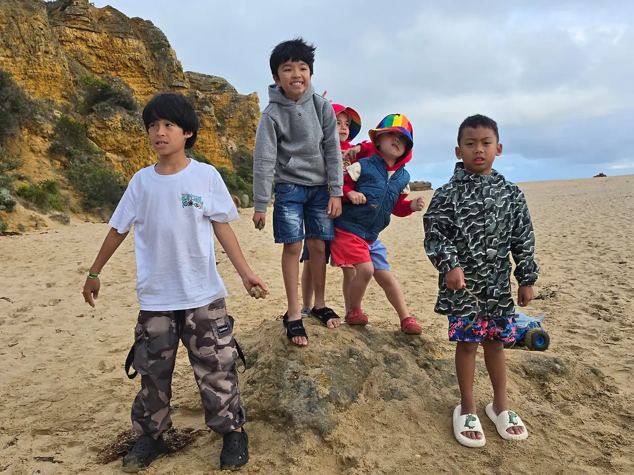 바운스에서 즐거운 시간을 보내고 숙소로 돌아와 간단한 점심을 먹은 후, 저희는 바다가로 향했습니다. 날씨가 조금 쌀쌀했지만, 그것이 저희의 발걸음을 멈추게 하지는 못했습니다. 아이들은 모래사장에서 모래성을 쌓고 물장난을 하며 즐거운 시간을 보냈습니다. 바다의 시원한 바람과 함께 아이들의 웃음소리가 이곳저곳에서 들려왔고, 저희는 그 모습을 바라보며 더할 나위 없는 행복을 느꼈습니다.