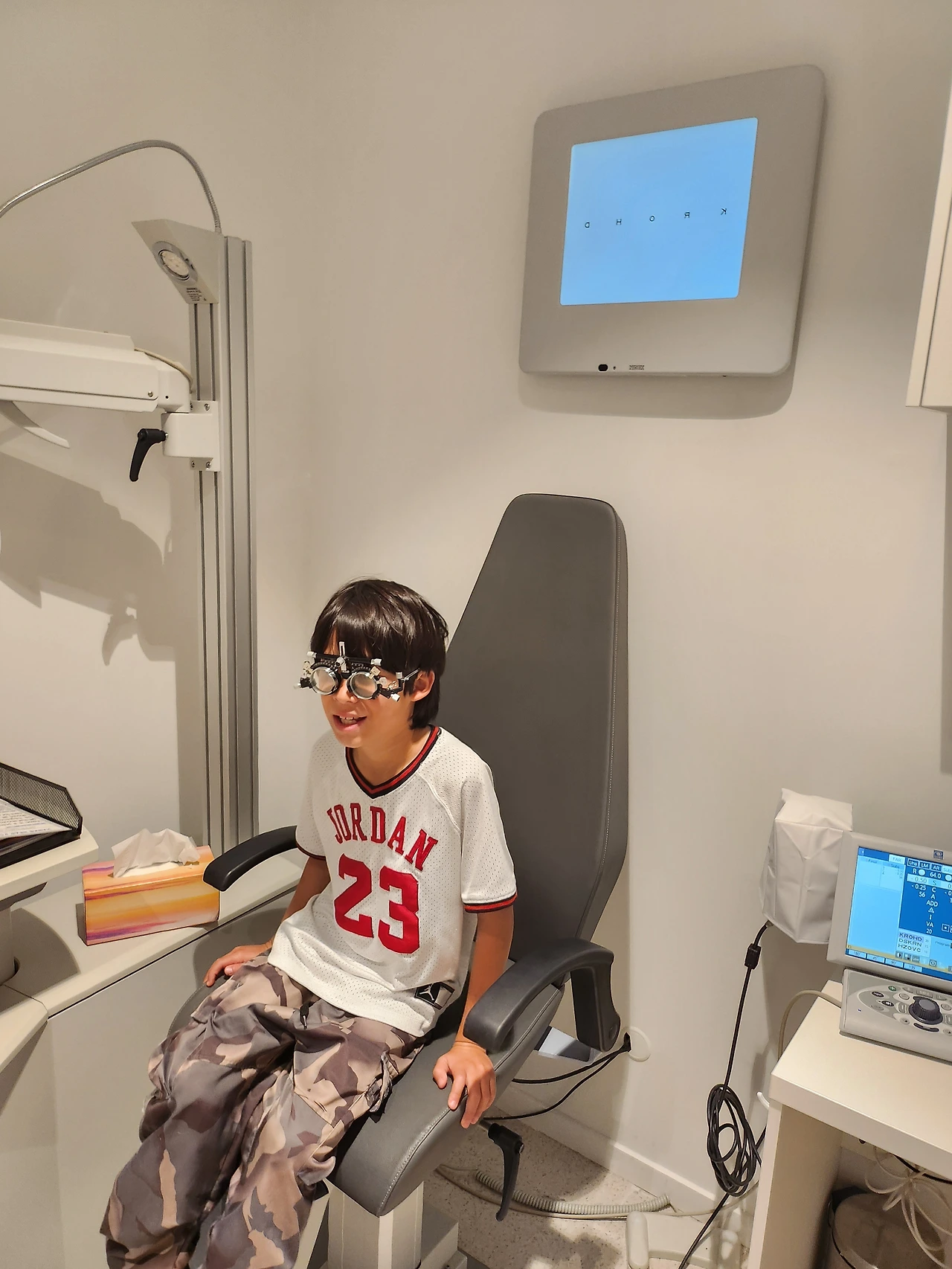 가벼운 상담을 받고 또한, 오랫동안 미뤄왔던 눈 검사도 받기로 했습니다. 행복이의 시력이 나쁜 편은 아니지만, 약간의 근시가 있어서 책을 읽거나 가까운 것을 볼 때 안경이 필요하다는 조언을 받았습니다. 그래서 오늘은 새로운 안경을 맞추기로 했습니다. 오늘은 행복이가 자신의 안경을 직접 고를 수 있도록 선택권을 주었습니다. 안경점에서는 다양한 프레임 중에서 마음에 드는 것을 선택할 수 있게 했고, 검사도 혼자서 할 수 있도록 격려해 주었습니다. 저는 밖에서 조용히 기다리며 행복이가 스스로 결정을 내리고 책임을 지는 모습을 지켜보았습니다.