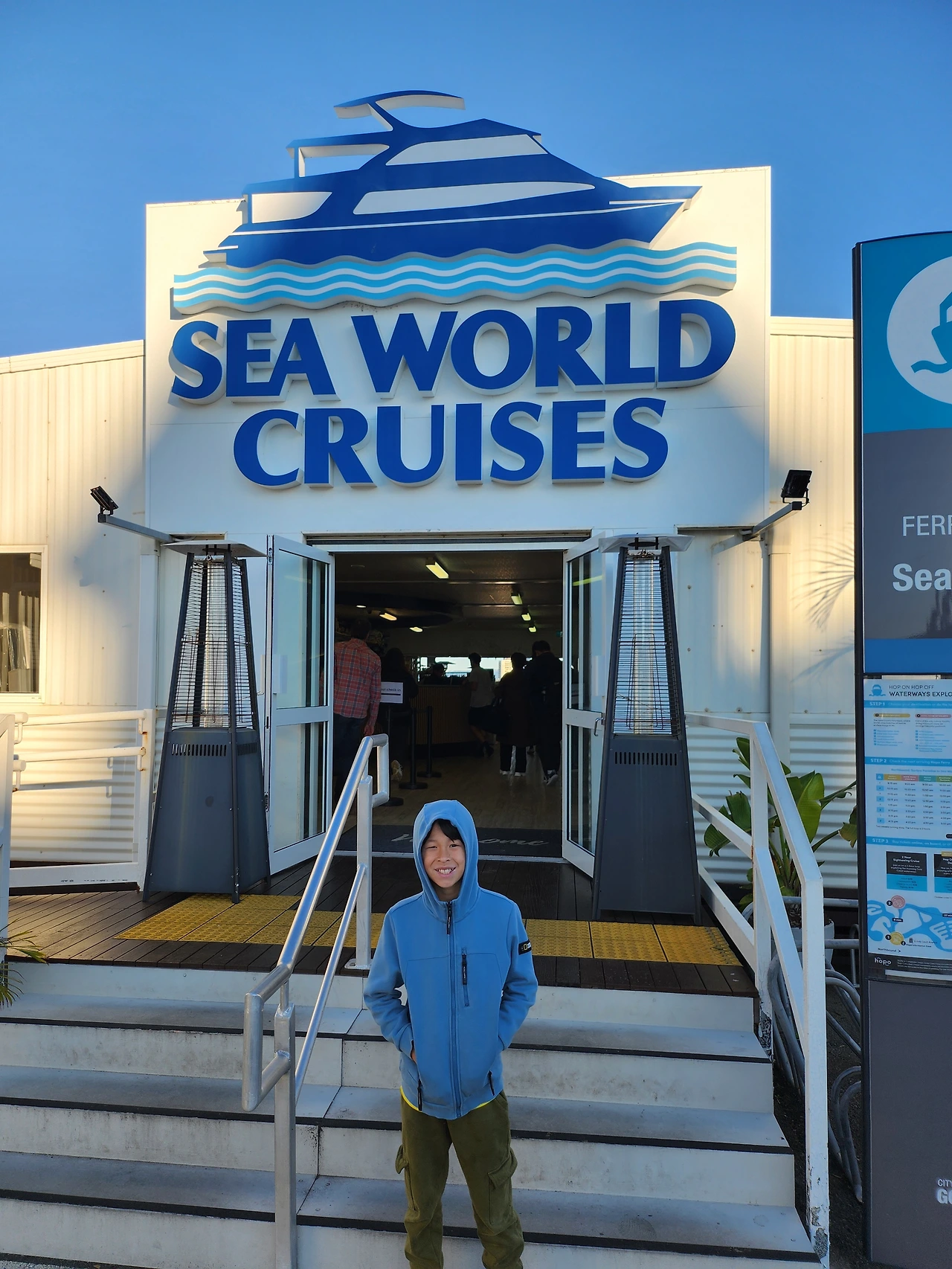 저는 동물을 정말 좋아합니다. 제 버킷리스트 중 하나는 동물원에서 보는 동물 말고 야생 동물을 직접 눈으로 보는 것이었죠. 오늘은 그 꿈이 현실이 되는 날입니다. 스티븐이 제 생일 선물로 바로 그 꿈을 들어주었습니다. 그는 야생 고래를 보는 씨월드 고래 관찰 크루즈를 예약해 준 것입니다. 아침 일찍 일어나서 7시 30분까지 크루즈가 출발하는 씨월드에 도착했습니다. 출발 전부터 기대감에 부풀어 있던 우리는 설렘과 긴장감이 뒤섞인 상태로 30분을 기다렸습니다. 정말 고래를 볼 수 있을지, 아니면 빈손으로 돌아올지 알 수 없는 상황에서 시간이 멈춘 듯한 느낌이 들었습니다.