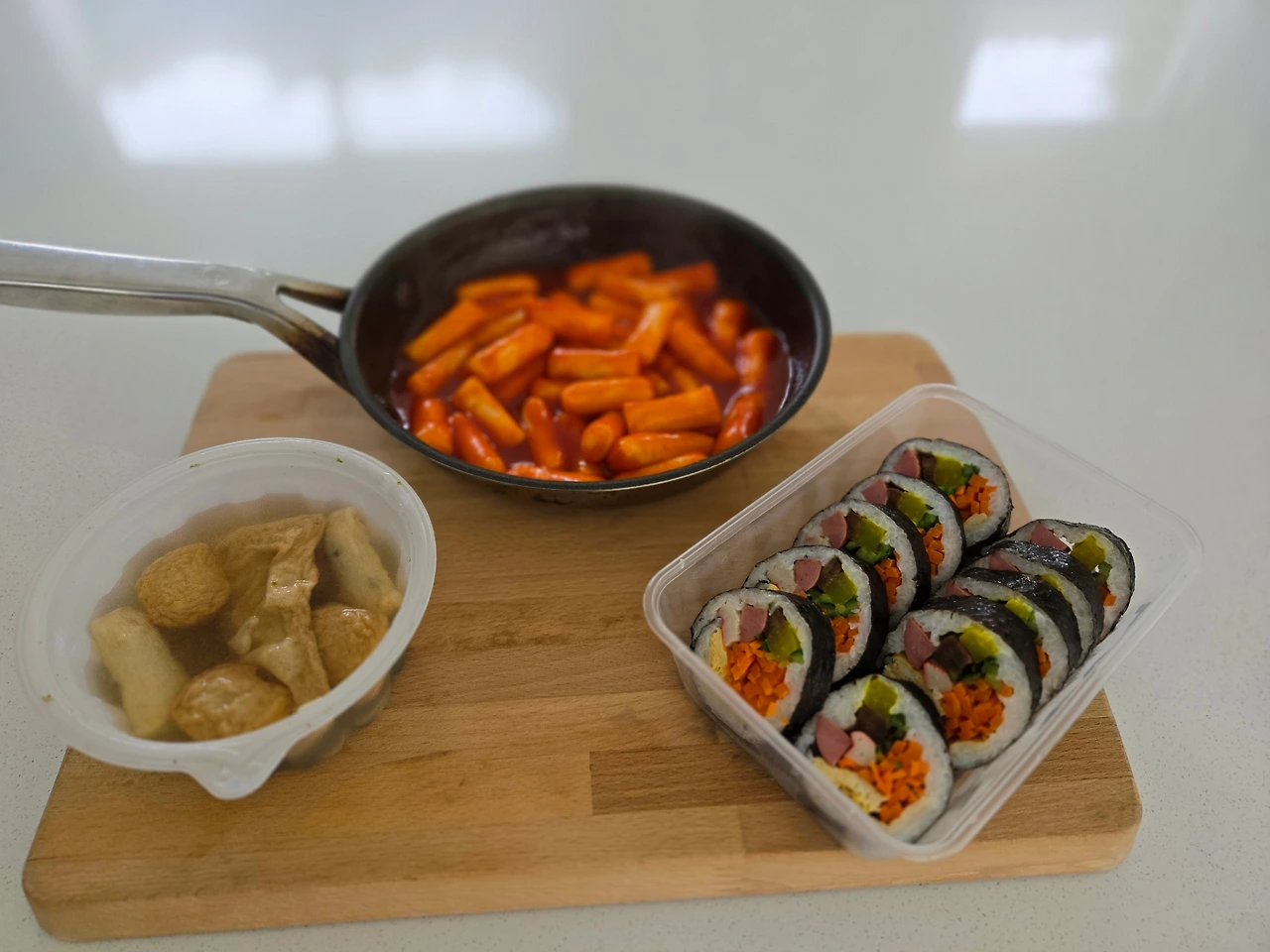 저는 분식을 정말 좋아합니다. 특히 김밥, 떡볶이, 그리고 어묵을 함께 먹는 것을 좋아하는데요, 이렇게 세 가지 메뉴를 한꺼번에 먹는 것은 저에게 최고의 분식 콤보입니다. 그런데 혼자 음식을 해 먹다 보면 항상 양이 문제가 되곤 합니다. 김밥은 한 줄만 만들기엔 재료 준비도 번거롭고, 떡볶이와 어묵도 마찬가지로 소량으로 만들기가 어려워요. 그래서 분식을 먹고 싶어도 혼자서는 자주 포기하게 됩니다.