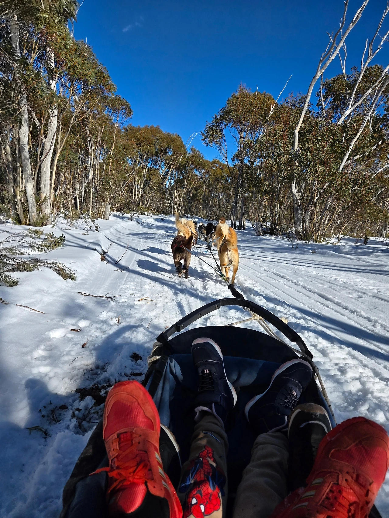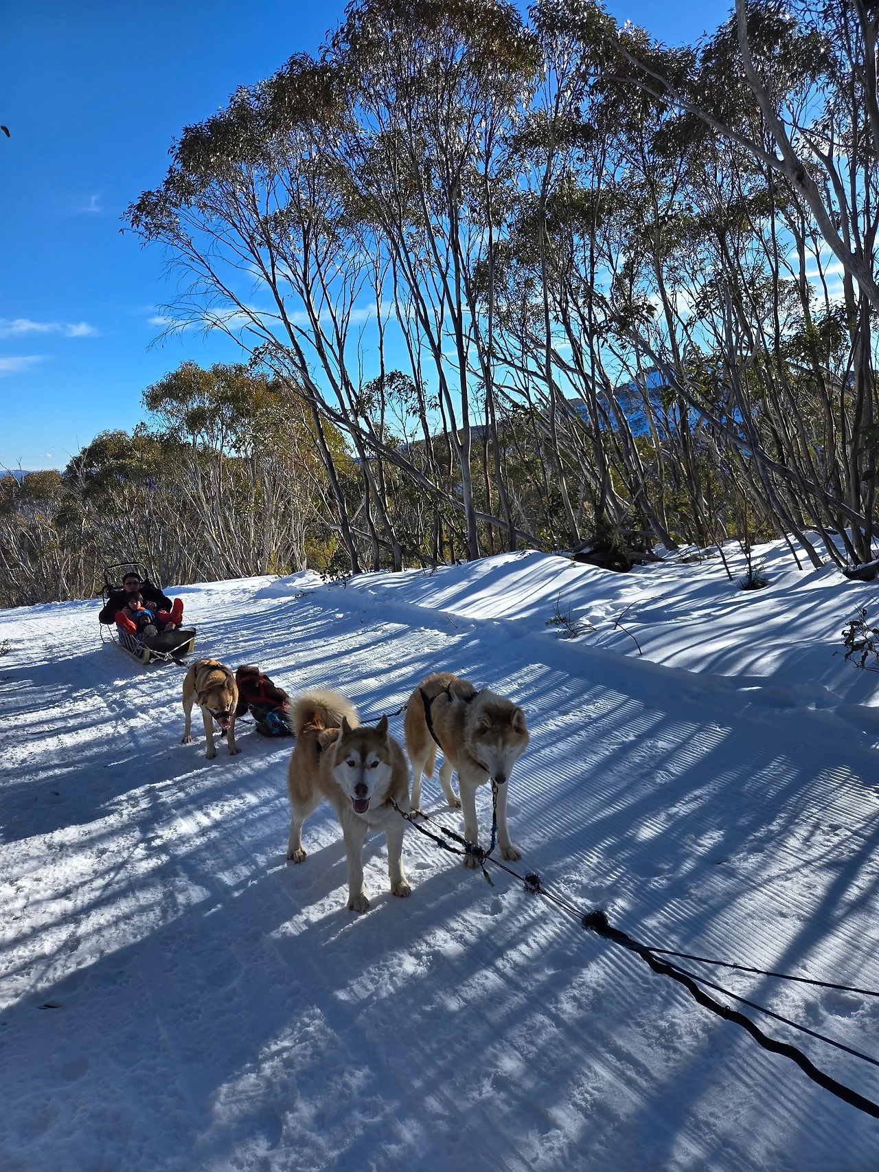 그렇게 재미나게 눈썰매를 타고 놀다가 개 짖는 소리를 들었습니다. 보니깐 허스키 눈썰매를 탈 수 있는 장소가 옆에 있었습니다. 허스키들이 눈 위에서 썰매를 끄는 모습을 보며, 행복이는 또 다른 신나는 경험을 할 수 있겠다고 생각했습니다. 허스키들이 힘차게 썰매를 끄는 모습은 정말 인상적이었고, 그 소리를 들으면서 눈썰매를 타는 즐거움이 더해졌습니다. 눈썰매를 타면서 눈의 차가움과 함께 신나는 경험을 한 행복이는 더욱 활기차게 뛰어다니며 눈놀이를 즐겼습니다. 이런 소소한 행복들이 여행을 더욱 특별하게 만들어 주었고, 저희 가족에게는 잊지 못할 추억으로 남을 것 같습니다.