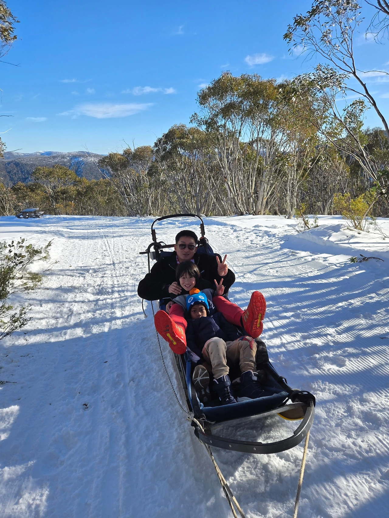 아침을 먹고 저희는 눈썰매를 타기 위해 눈썰매를 탈 수 있는 장소로 갔습니다. 처음으로 눈썰매를 타는 행복이는 정말 행복해했습니다. 눈 위에서 썰매를 타며 내려오는 그 순간의 짜릿함과 속도감을 느끼며, 행복이는 끊임없이 웃음을 터뜨렸습니다. 눈썰매는 단순한 놀이 같지만, 그 안에는 많은 재미와 스릴이 담겨 있었습니다. 눈썰매를 타고 내려오는 길은 완만하면서도 적당한 경사로 이루어져 있어서 초보자도 쉽게 즐길 수 있었습니다. 눈 위를 미끄러지듯 내려오는 느낌은 마치 하늘을 나는 것 같은 자유로움을 주었습니다. 행복이는 속도를 조절하면서 더 빨리, 더 멀리 내려가고 싶어 했고, 저는 그런 행복이를 지켜보며 뿌듯한 마음이 들었습니다.