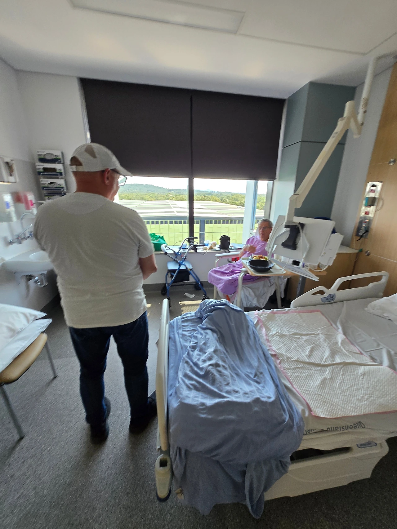 병원에 도착했을 때 주차장은 이미 만차였고, 그만큼 많은 사람들이 아프다는 생각이 들었어요. 스티븐 어머니는 스티븐이 다시 골드코스트로 돌아와 매우 기뻐하셨습니다. 부모님이 서로를 챙겨주고 돌보는 모습도 보기 좋았지만, 자식들이 곁에서 챙겨주는 게 얼마나 중요한지 다시 한번 실감하게 되었어요. 병원이 너무 커서 병실 찾기부터 의사와 간호사와 의사소통, 환자에게 필요한 물건 구입부터 물건을 옮기는일 등 다른 사람의 도움이 필요한 일들이 있어 보였습니다.