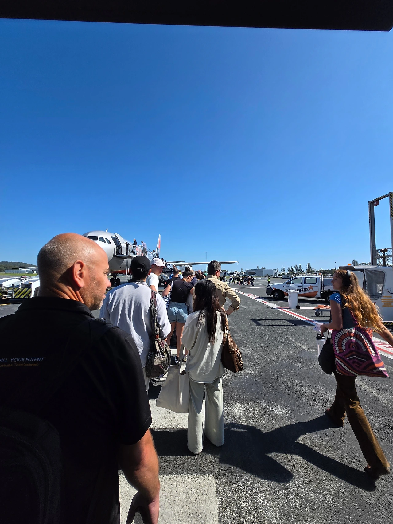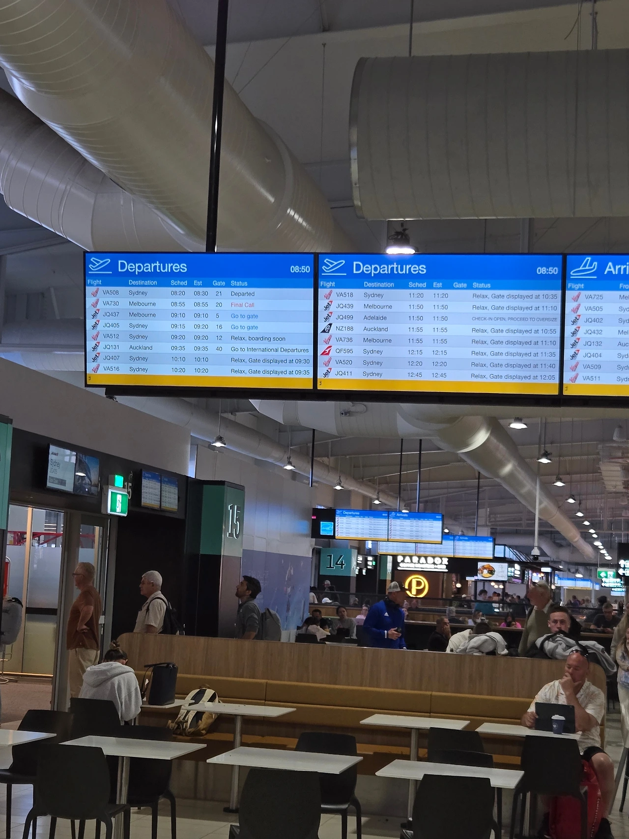 공항에서 기다리는 동안, 스티븐이 비행기 번호가 JQ437인데 제가 비행기를 기다리고 있는 게이트로 오지 않고 이상한 방향으로 가고 있다며 저에게 말해주었습니다. 그런데 스티븐의 말을 듣고 보니 탑승시간이 다되어가는데도 안내 방송이 나오지 않아서 조금 불안해지기 시작했습니다. 비행기가 지연되거나 취소될 때가 종종 있어 오늘 출근이 걱정됐거든요. 스티븐은 저를 공항까지 데려다주고 동생 크리스가 골드코스트에 도착하자마자 부모님 집으로 가야 해서 작별 인사를 나눈 뒤 공항을 떠났습니다. 스티븐은 11시가 넘으면 출근을 못하니 꼭 안내 방송을 잘 듣고 12시 넘으면 회사에 연락을 해야 한다고 당부했죠.