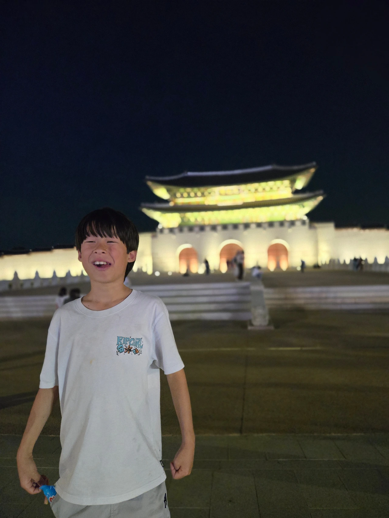 하지만 광화문을 둘러보는 동안 행복이가 조금씩 피곤해하는 모습이 보이기 시작했어요. 낮에 홍콩에서부터 이어진 긴 여정에다, 저녁 시간까지 이어진 활동이 행복이에게는 무리가 되었던 것 같아요. 더 많이 구경하고 싶은 마음이 컸지만, 행복이의 피로가 눈에 보이자 결국 일찍 숙소로 돌아오기로 했습니다.