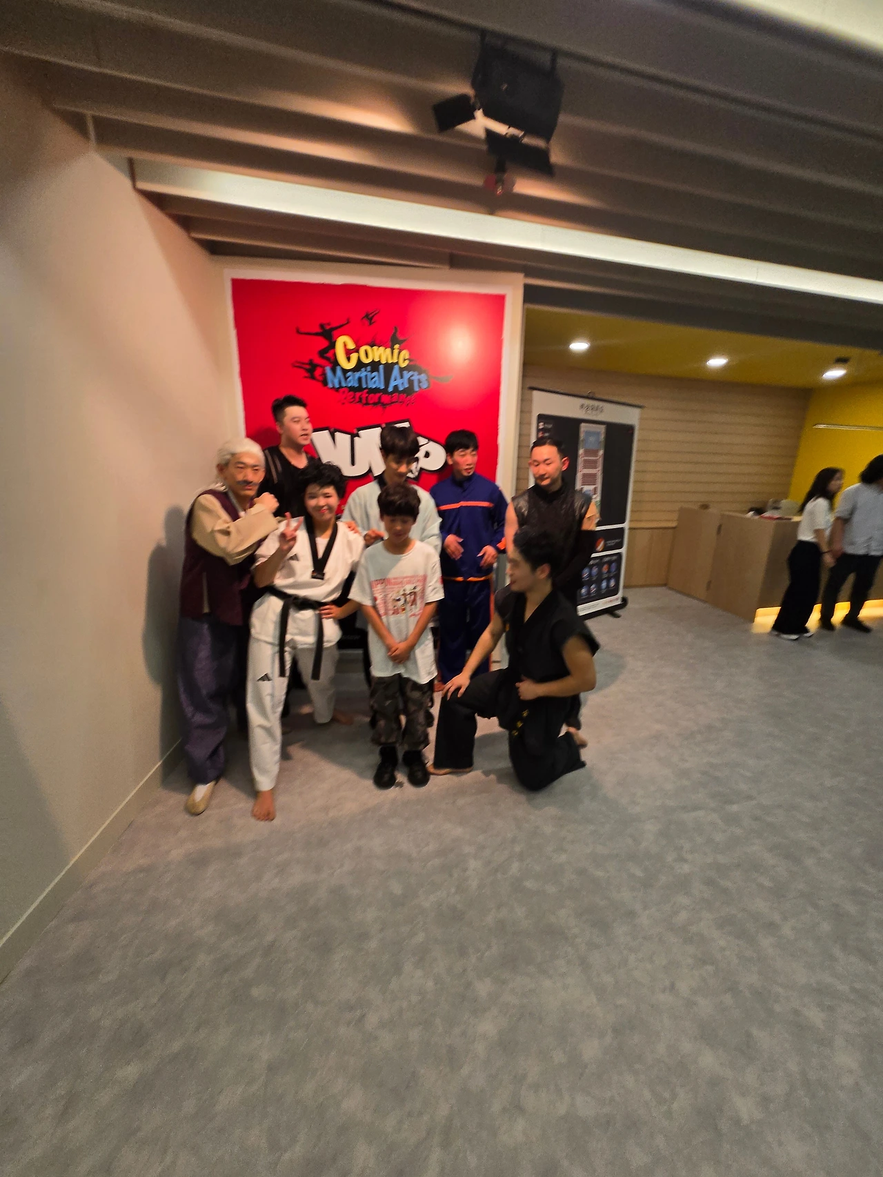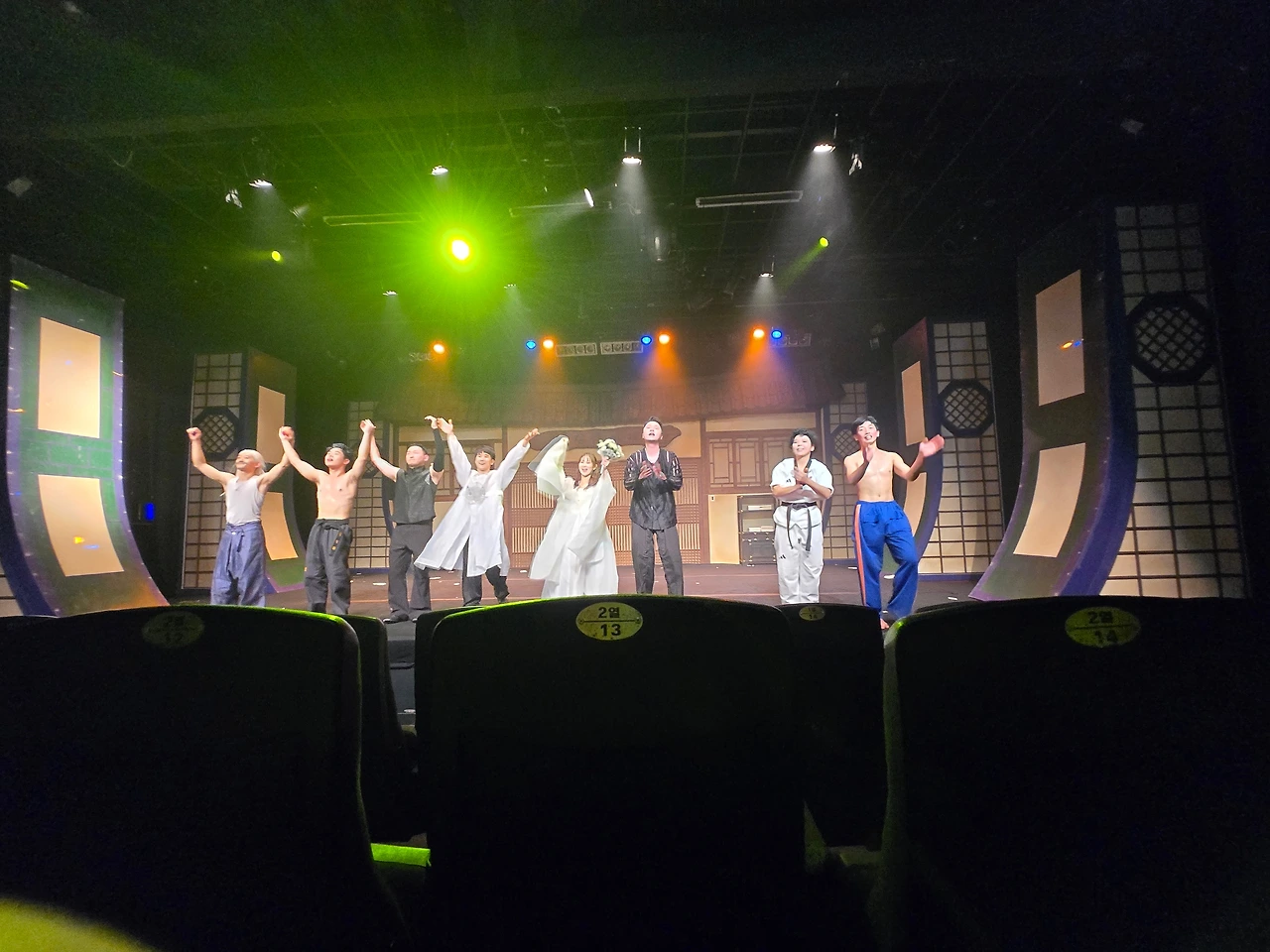 "점프"는 코미디와 무술을 결합한 넌버벌(non-verbal) 공연으로, 대사 없이도 신체적 표현과 무술 동작을 통해 이야기를 전달하는 독특한 쇼입니다. 태권도와 택견 같은 한국 전통 무술을 바탕으로 한 화려한 액션 장면들이 많고, 여기에 유머를 더해 남녀노소 누구나 즐길 수 있는 공연이라고 생각합니다. 대사 없이도 몸짓과 무술만으로 내용을 이해할 수 있어, 언어의 장벽을 넘어서 즐길 수 있는 공연이라는 점이 인상 깊었습니다.