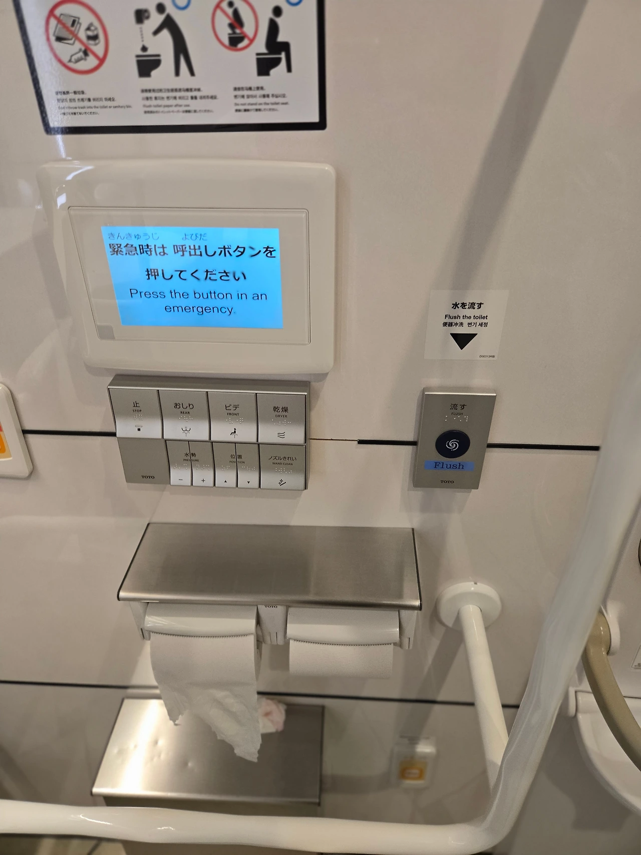 시부야에서 시간을 보낸 후, 저희는 공항으로 향했습니다. 그런데 일본에서 특히 인상 깊었던 점은 화장실 사용 방식이었습니다. 한국도 일본처럼 비데 사용이 많고, 비데를 선호하는 사람들이 많지만, 일본 화장실에서는 조금 독특한 점을 발견했어요. 일본의 화장실에서 변기 물을 내리는 버튼이 보통 변기에 붙어 있지 않고 벽에 설치되어 있다는 것입니다. 처음에는 저도 열심히 변기 주변을 살피며 물 내리는 버튼을 찾으려 했지만, 어디 있는지 발견하지 못해 잠시 당황했던 기억이 납니다. 일본의 화장실은 비데뿐만 아니라, 이런 작은 세부 사항들도 꽤나 체계적으로 관리되어 있는 느낌이었어요. 일본 사람들의 화장실에 대한 세심함과 기술적인 편리함이 눈에 띄었습니다. 특히 화장실과 샤워 공간이 대부분 분리되어 있다는 점이 인상 깊었어요. 저희가 일주일 동안 머문 4곳의 숙소 모두 화장실과 샤워 공간이 따로 분리되어 있었고, 샤워 공간은 작은 목욕탕처럼 느껴졌습니다. 일본의 이러한 구조는 편리함을 제공할 뿐만 아니라, 목욕 문화를 반영한 세심한 배려라고 느껴졌습니다.