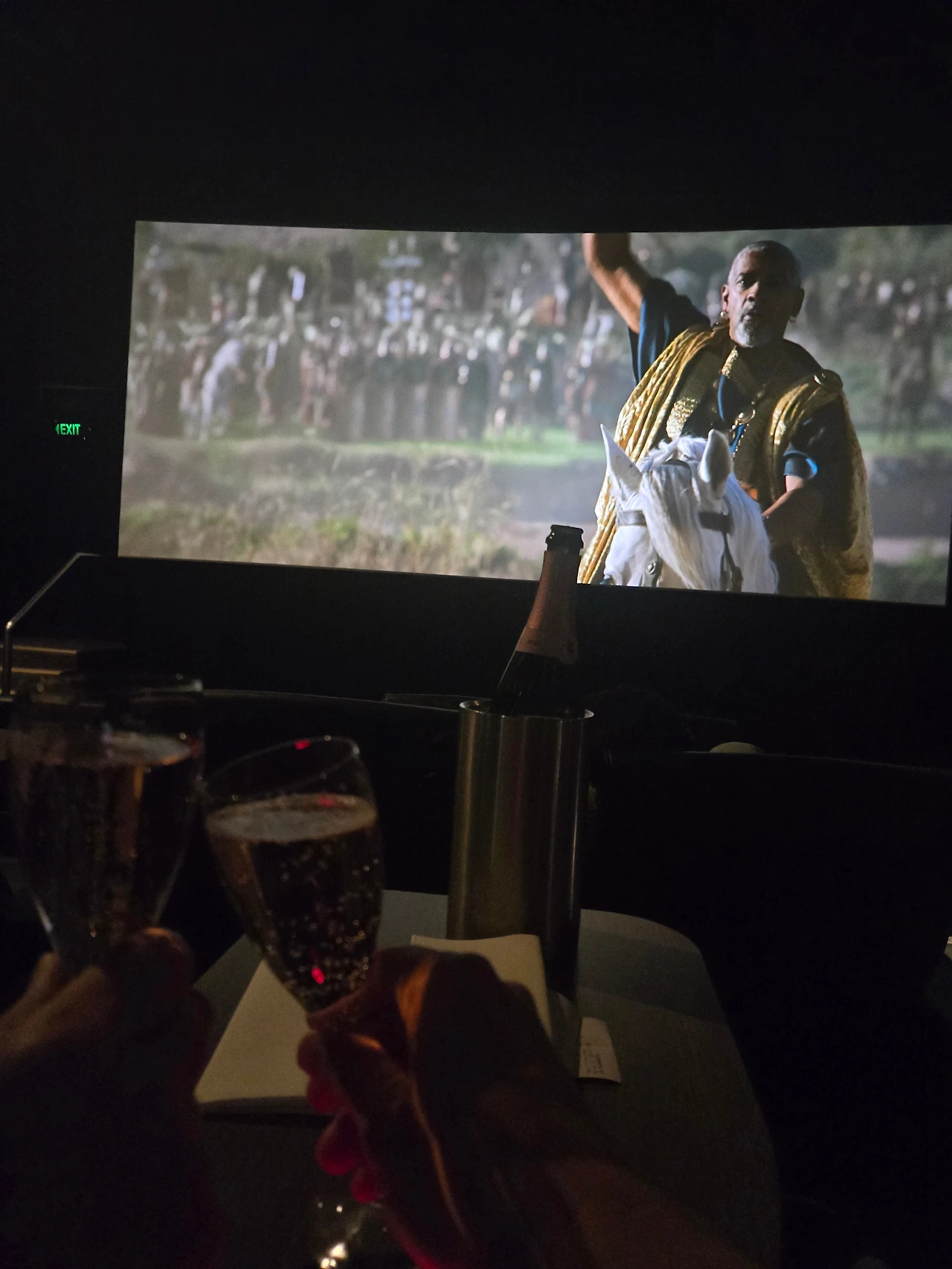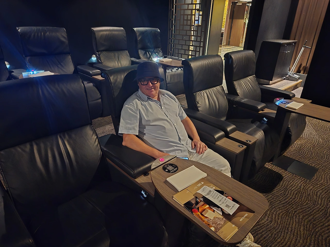 그렇지만 빌리지 골드 클래스의 경험은 기대 이상이었습니다. 널찍하고 편안한 의자에 앉아 종업원의 세심한 서비스를 받으며 샴페인과 간식을 즐기며 영화를 관람하니, 마치 신선한 감각이 다시 살아나는 기분이 들었어요. 영화가 시작되고 스크린 속 이야기로 빠져들면서, 둘 다 설레는 마음으로 긴장과 기대에 푹 빠졌습니다. 중간중간 영화에 사랑스러운 장면이 나올 때는 서로의 손을 자연스럽게 잡았는데, 그 짧은 순간에도 큰 의미가 느껴졌습니다. 말을 하지 않아도 손을 꼭 잡고 있는 그 순간이, 오랜 시간 함께한 우리의 유대감을 확인시켜 주는 것 같았어요.