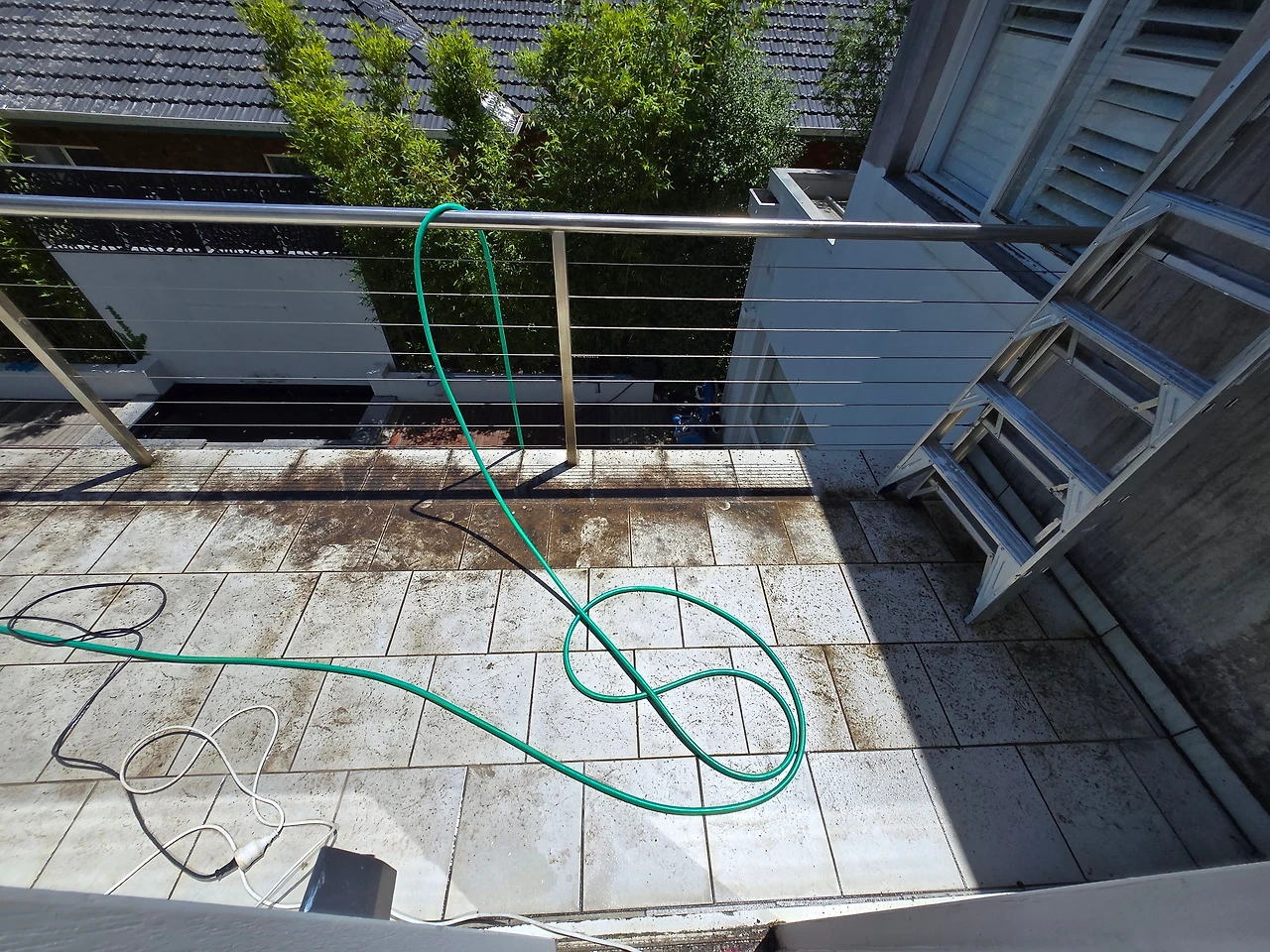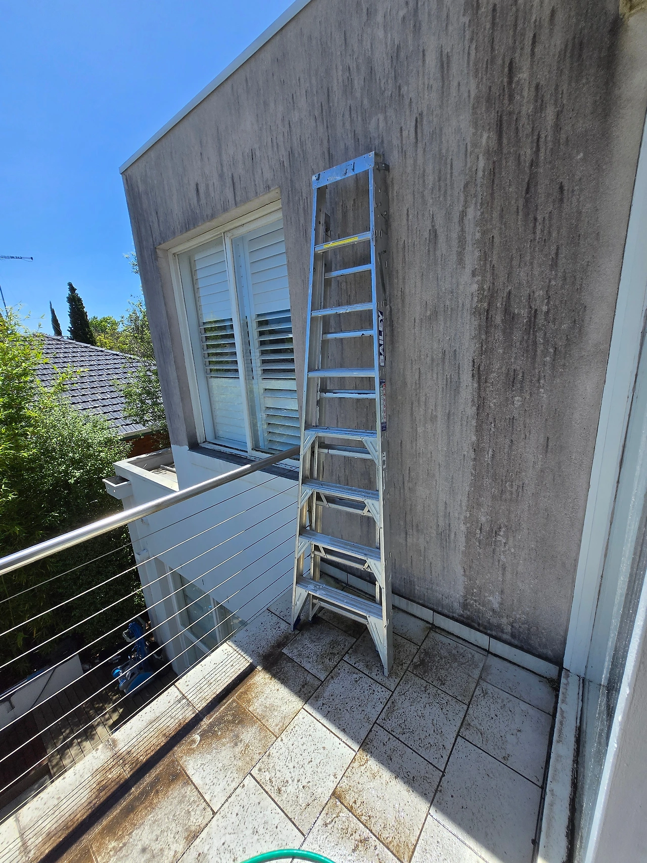 햇살이 비치는 가운데, 장갑을 끼고 곰팡이 제거제를 뿌리며 작업을 시작했습니다. 외벽 아래 쪼그려 앉아 손과 팔을 최대한 뻗어 솔로 문지르기를 반복했습니다. 곰팡이가 쉽게 떨어지지 않아 몇 번이고 힘을 줘 문질러야 했고, 이끼가 바람에 흩어지면서 얼굴에까지 튀어 작업은 더 고되게 느껴졌습니다. 집 주변이 조용했고, 스티븐도 다른 곳에서 준비 작업을 하고 있었기에 저는 작업에 완전히 몰두하고 있었습니다. 그런데 그때였습니다.